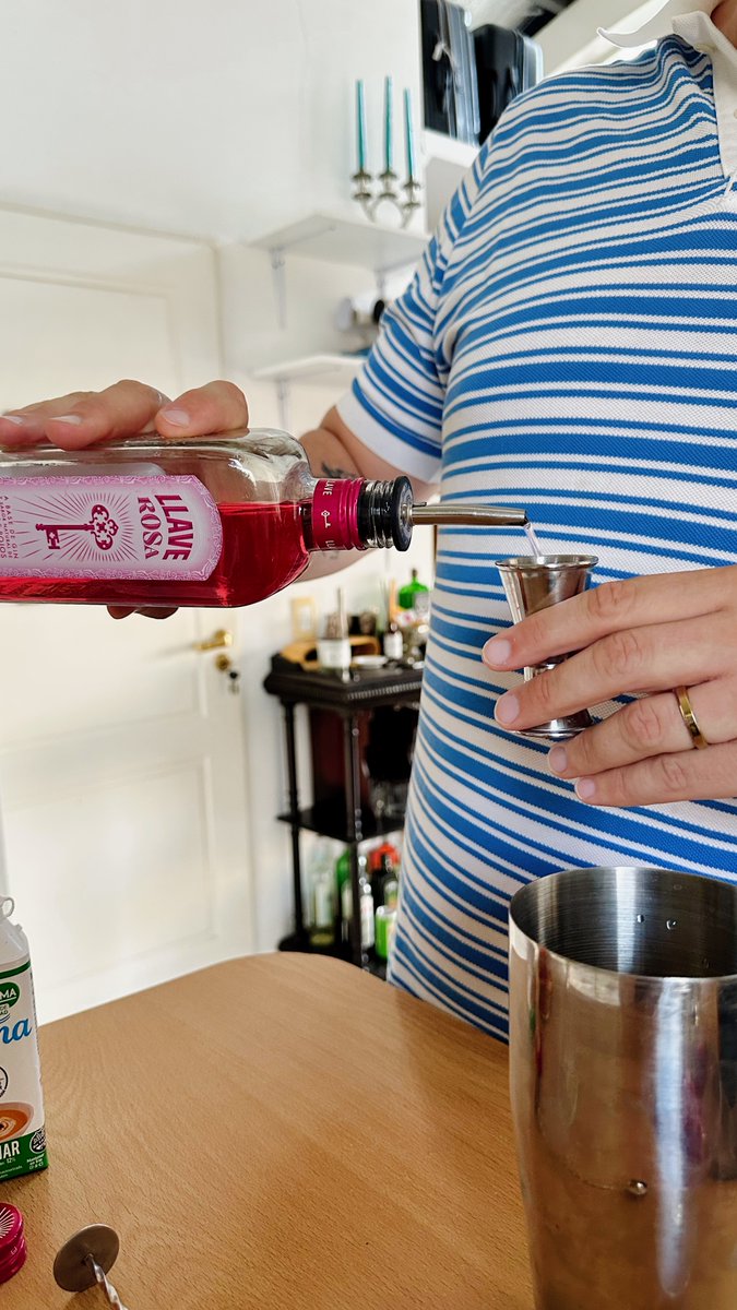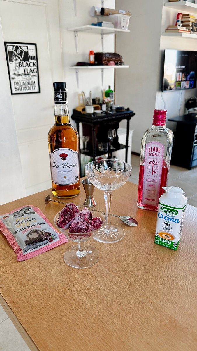 Primero nos quisimos volar y armamos un Angel Rosa, reversionando uno que encontramos en internet: cremoso, enebroso y dulce. Casi un trago de postre para hacer en casa, un poco de sabor de cielo en nuestras bocas.