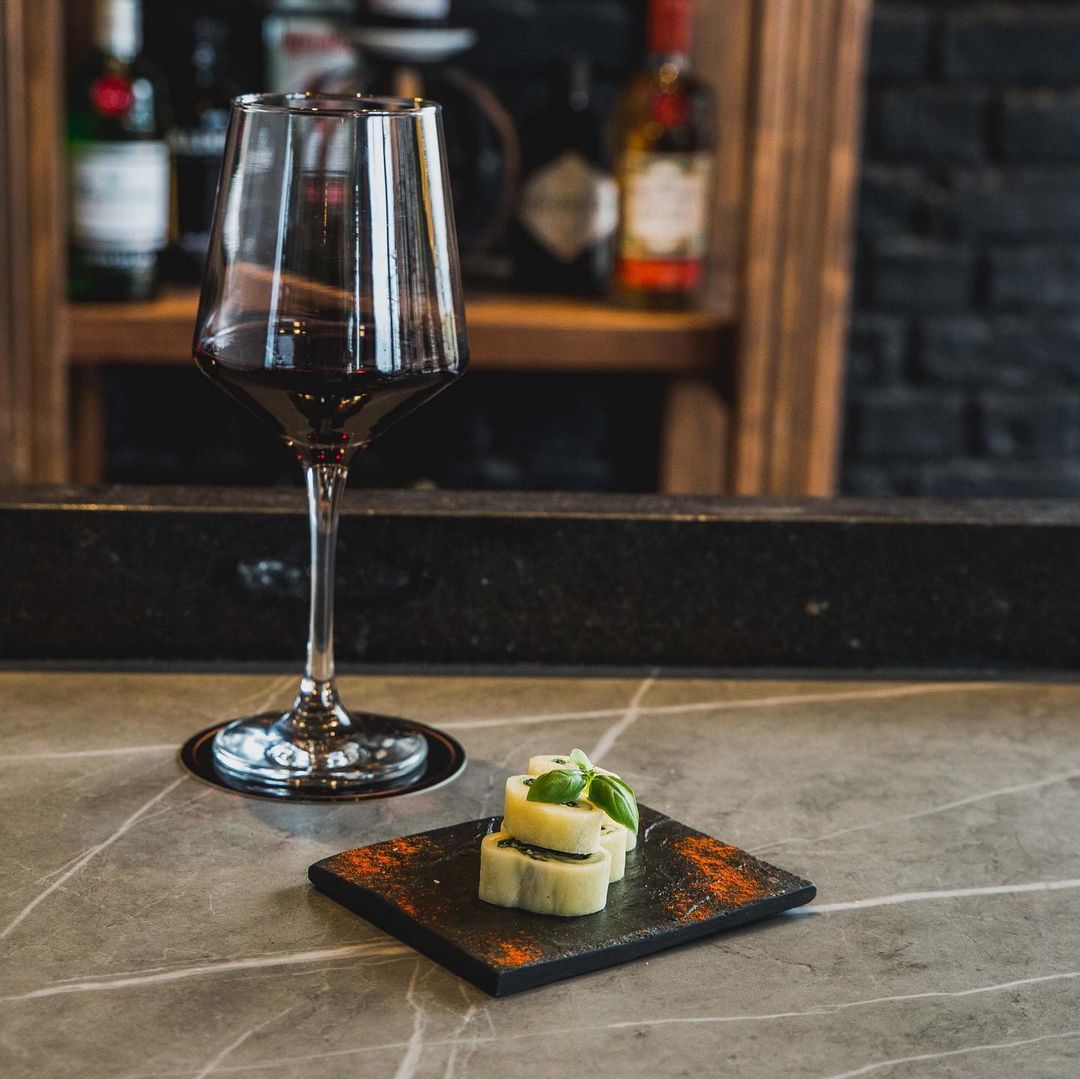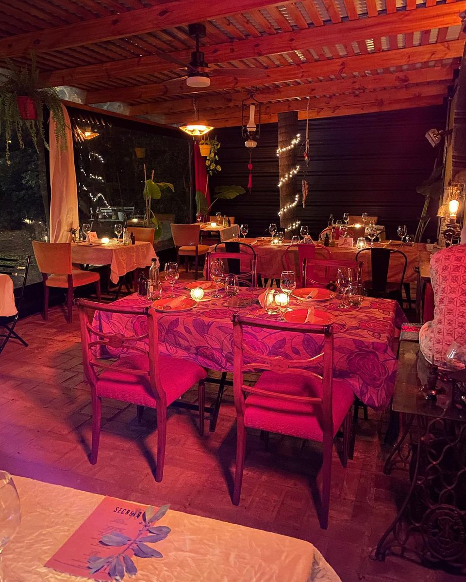 Luces bajas, jazz, una casa antigua reciclada, cena gourmet por pasos y vino.