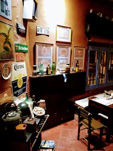 Bodegón en casa reciclada con adornos de la feria retro. Linda onda. Se come bien.