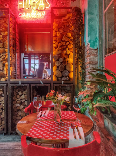 Otro con atmósfera tana, mucho rojo y blanco. Para ir a comer pizza o pasta.
