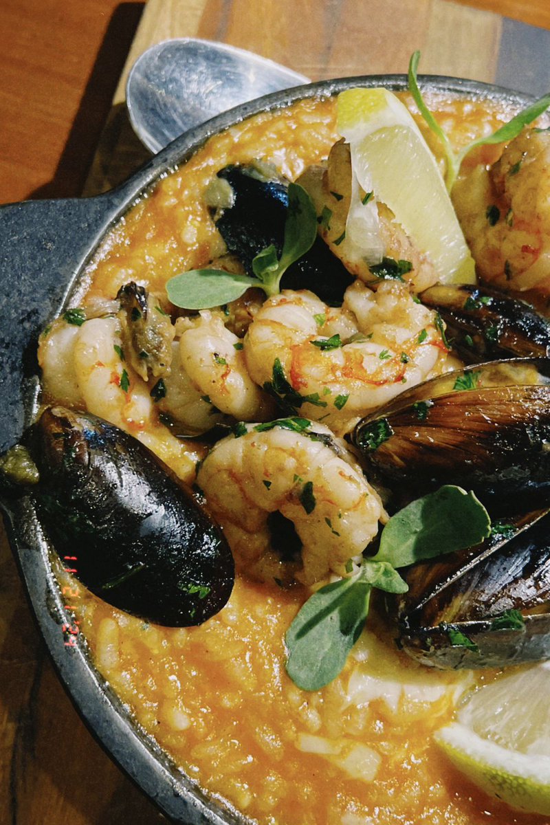 Después probé el arroz bomba con chipirones, gambas y calamar. En realidad lo hacen con carnaroli, un salteado de verduras y frutos de mar. Muy, pero muy rico. Caldoso, con mucho queso (y bueno) y generosa cantidad de mariscos. $18.700