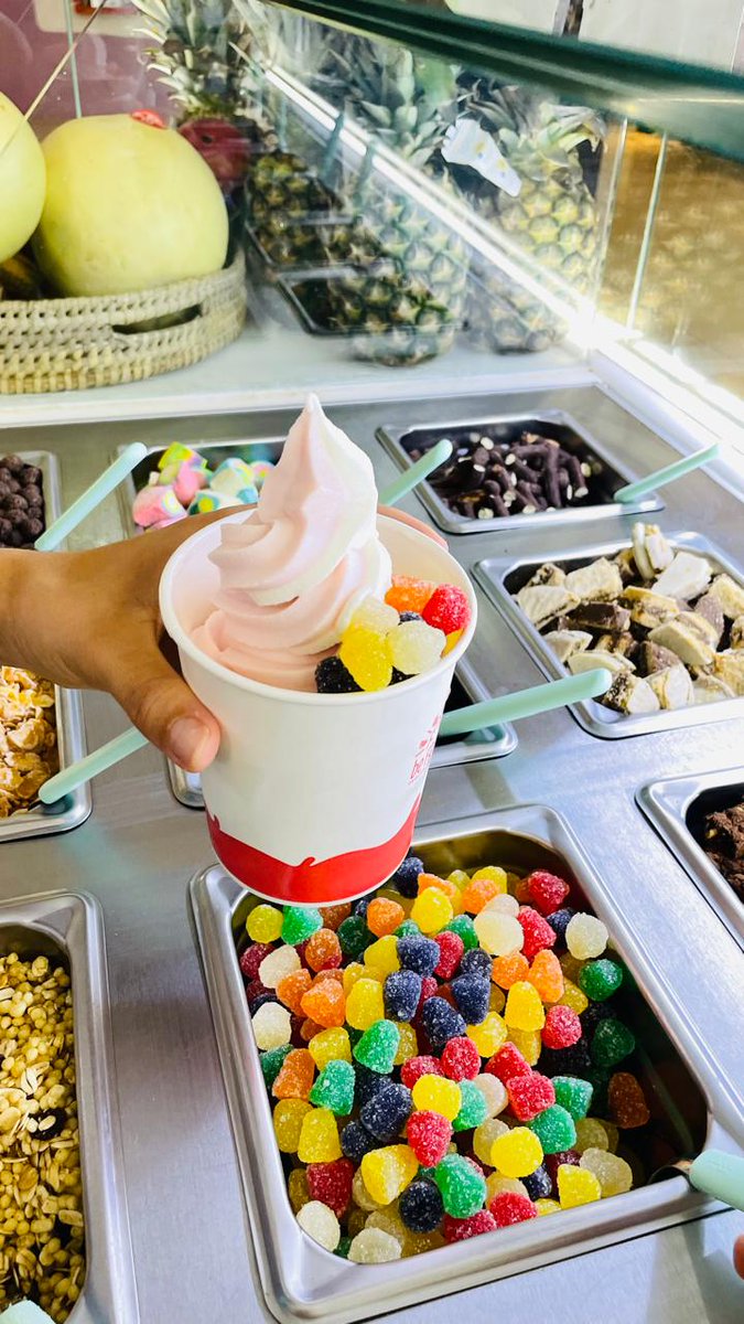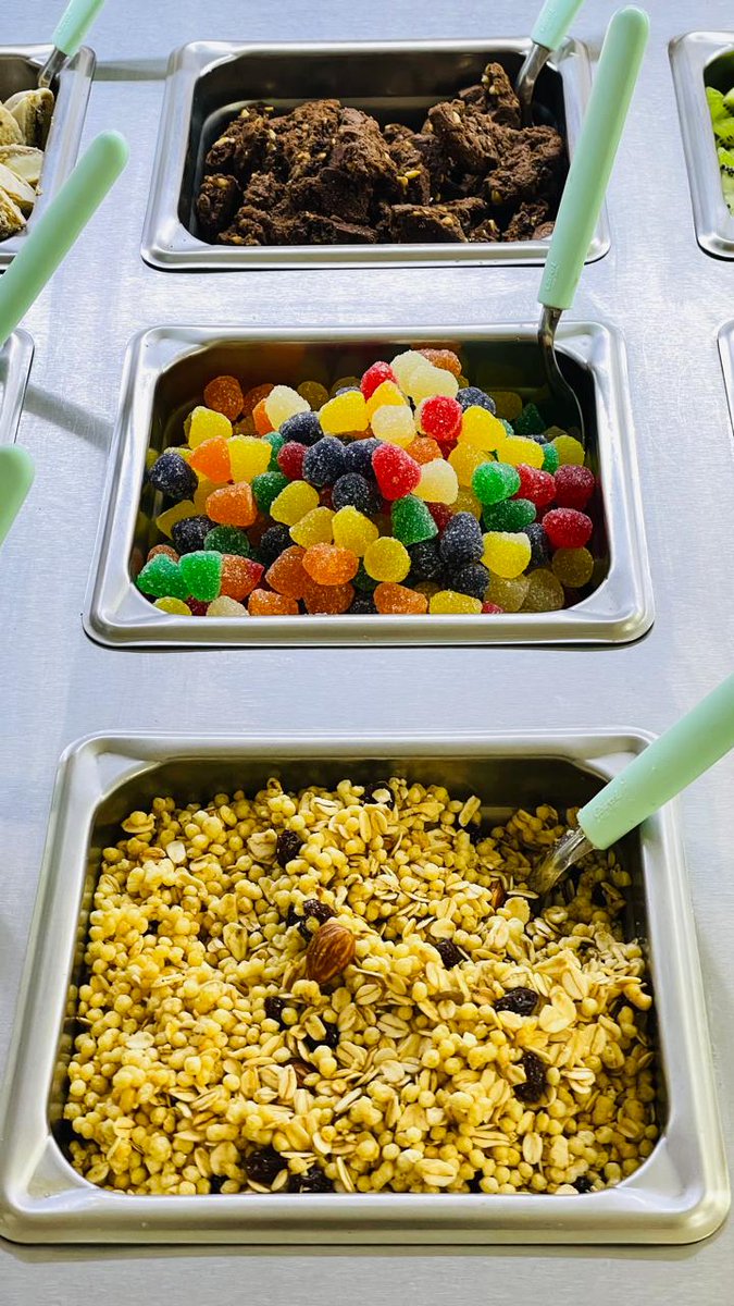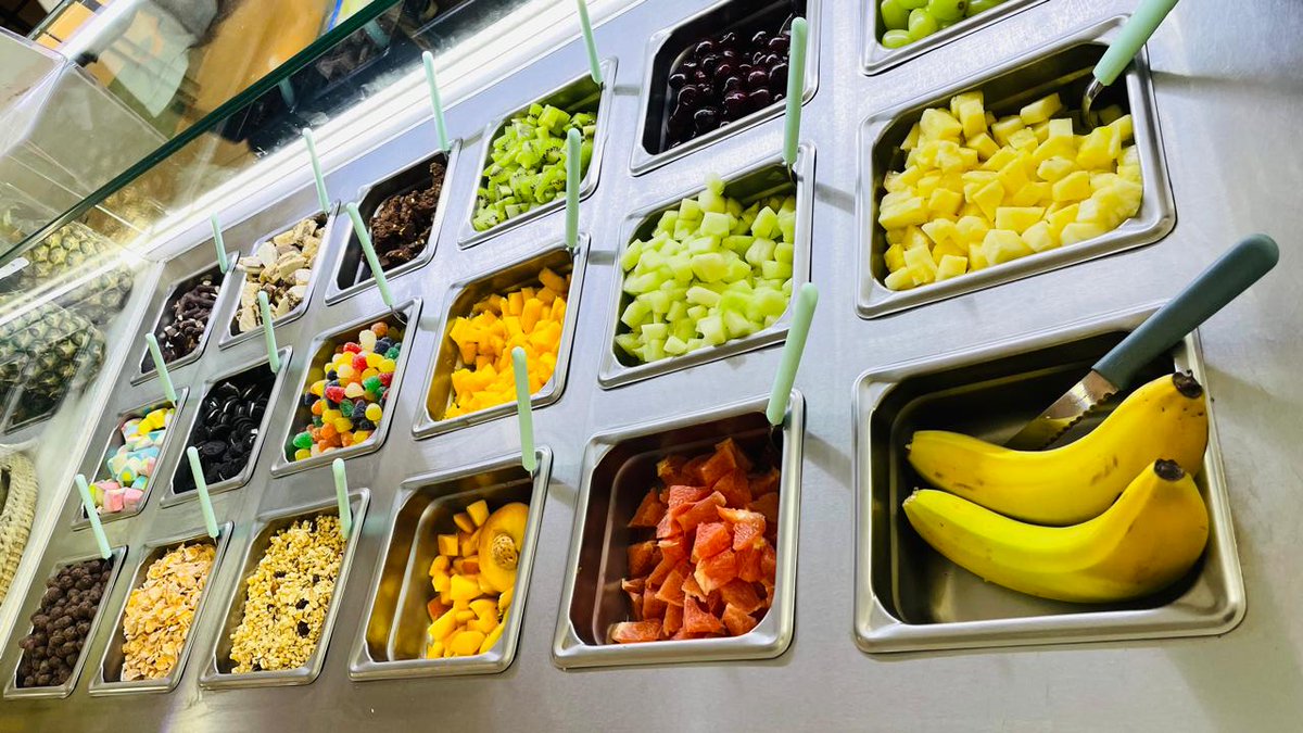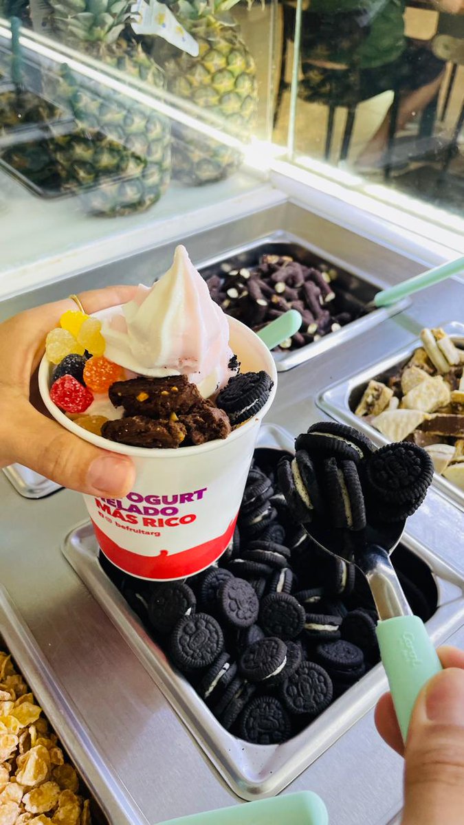 1️⃣ Yogurt helado (vainilla, frutilla o combinado) con hasta 18 toppings: frutas, Mini Oreo, alfajores, gomitas, lo que quieras. Entre $3.000 y $5.400 dependiendo del tamaño.