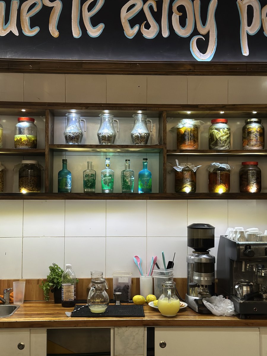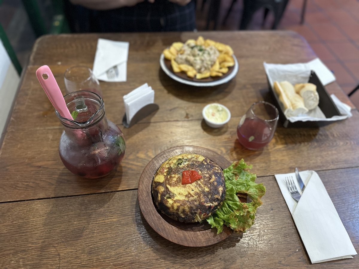 La comida fue buena, pero el gran protagonista es el lugar. Una propiedad que tiene +150 años ubicada en el casco histórico, con estética colonial-jesuítica, un edificio de techos altísimos con tirantes de madera expuesta, aberturas grandes, paredes blancas y baldosas terracota.