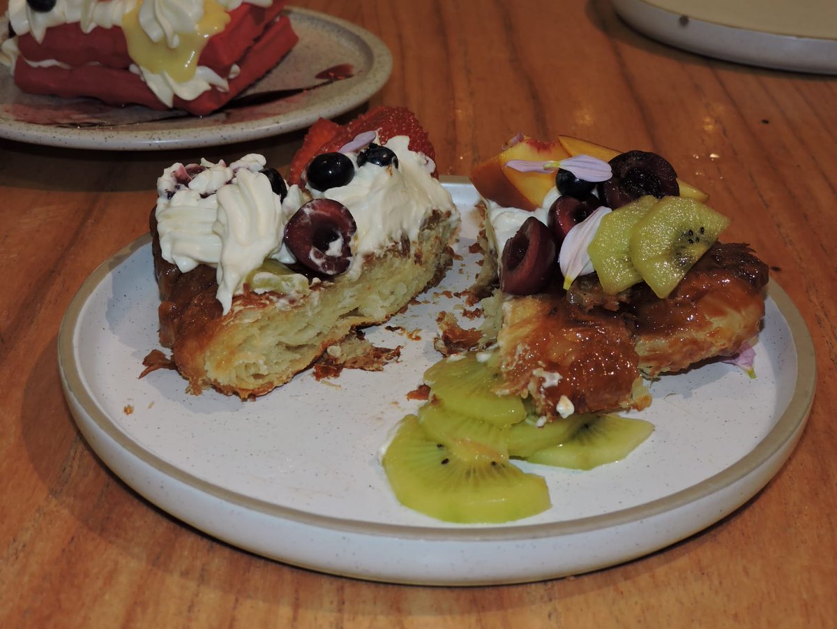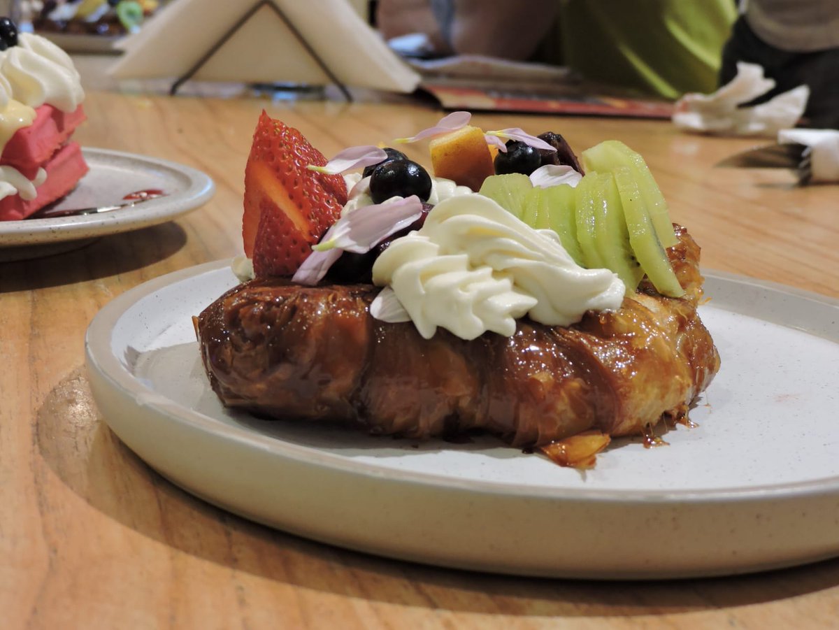 Croissant french toast: caramelizada, con crema chantilly y frutas frescas. Es un croissant hecho french toast CON CARAMELO. Vayan a probar esto ya. Una experiencia inexplicable en el paladar.