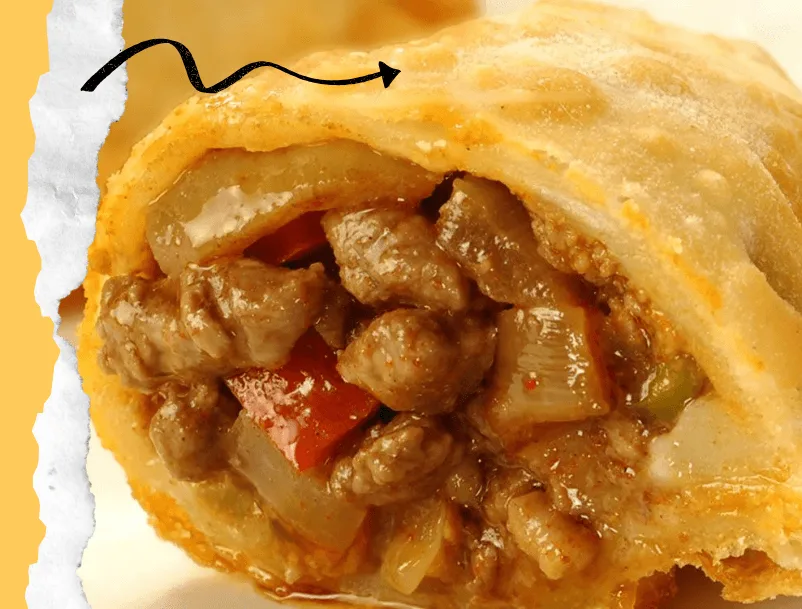 Esta empanada de asado va derecho a mi top de Rosario. Hecha con tapa de asado doble cocción. Primero al horno en caldo. Después cortada a cuchillo y a la olla. Es frita, pero sequita, la masa es finita. Viene dulce y salada. La hacen en Chamuyo.