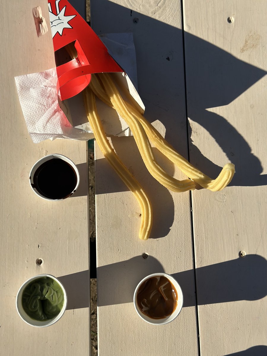 ▪️Churros españoles: largos (23 cm), finos y crocantes. $4800 x4 y el dip aparte (DDL, choco, pistacho)