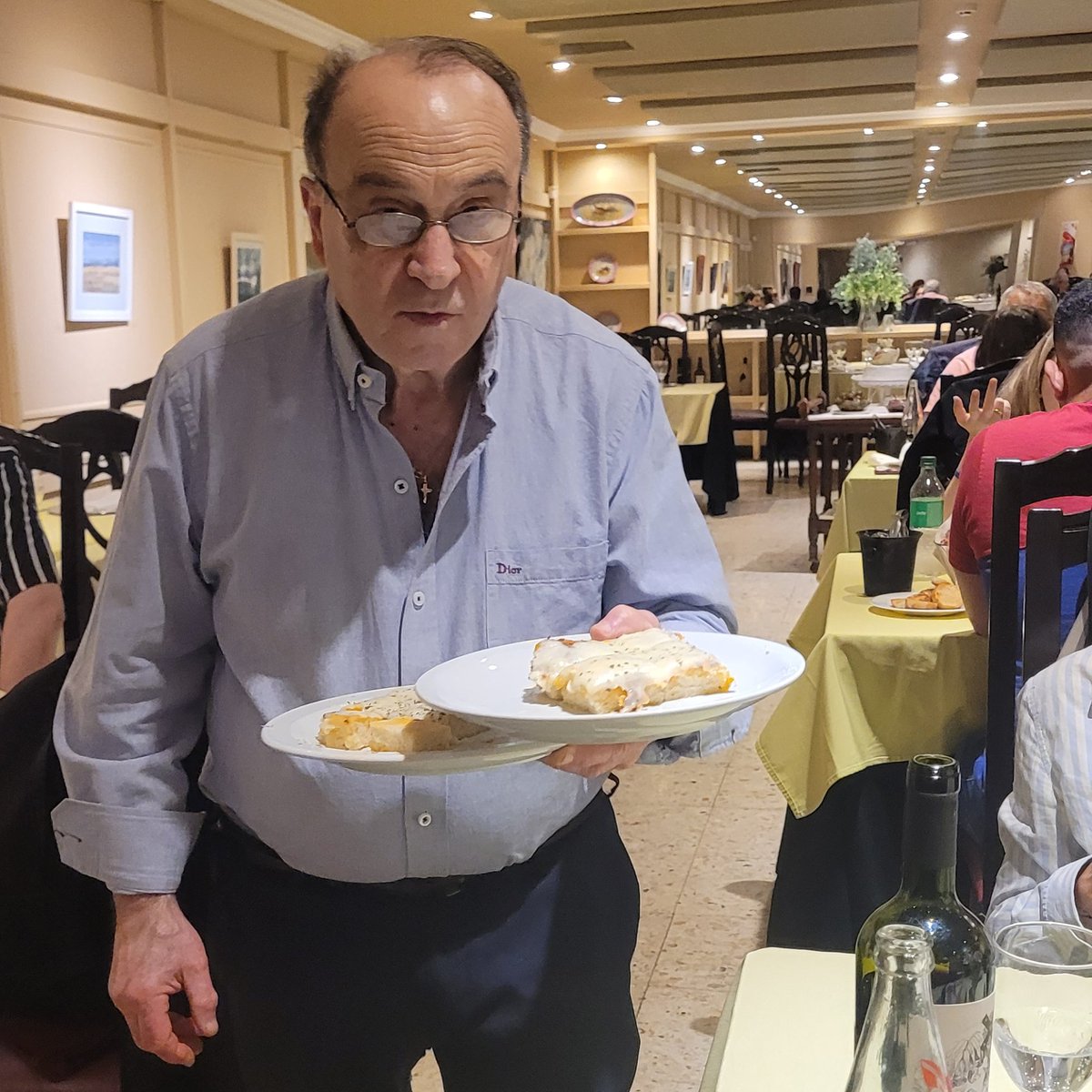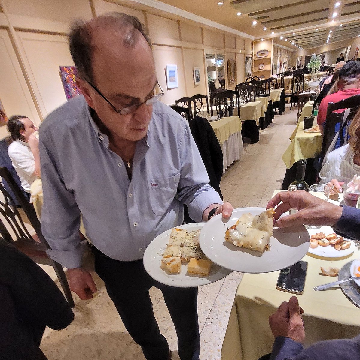 Nicolás, que tiene 73 años y es calabrés, atiende el comedor como en la vieja escuela, en la que el dueño está omnipresente. Se la pasa dando vueltas por las mesas, recibiendo a la gente, saludando, llevando pizza o empanadas cortadas mientras esperás el plato caliente.
