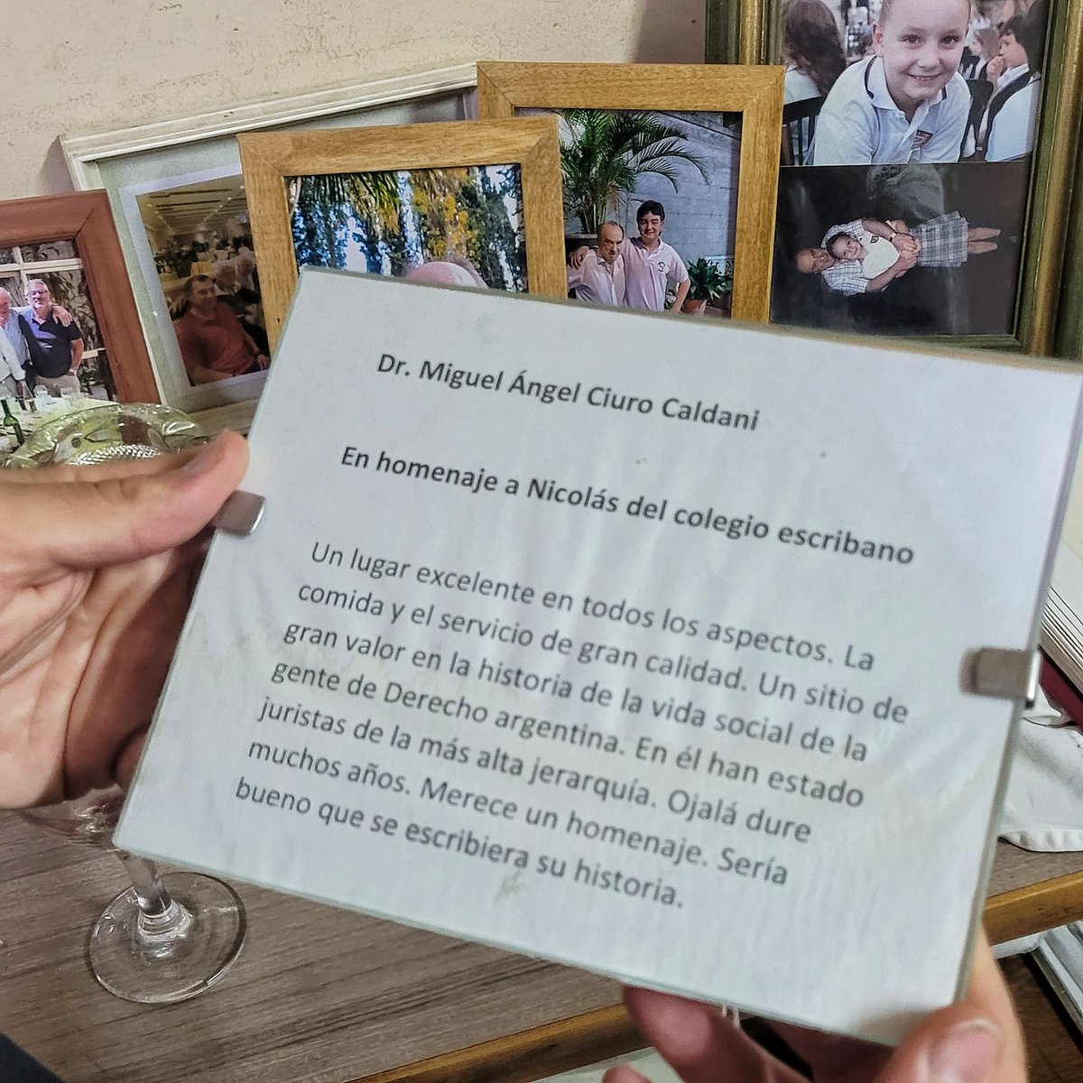 La escena parece sacada de una película de Scorsese. En la pared hay fotos familiares y otras con figuras del Poder Judicial que elegían el comedor para comer. En algunas, Nico tiene puesto chaleco y moño. Siempre sonríe de costado, con un ojo medio cerrado, como un personaje de De Niro.