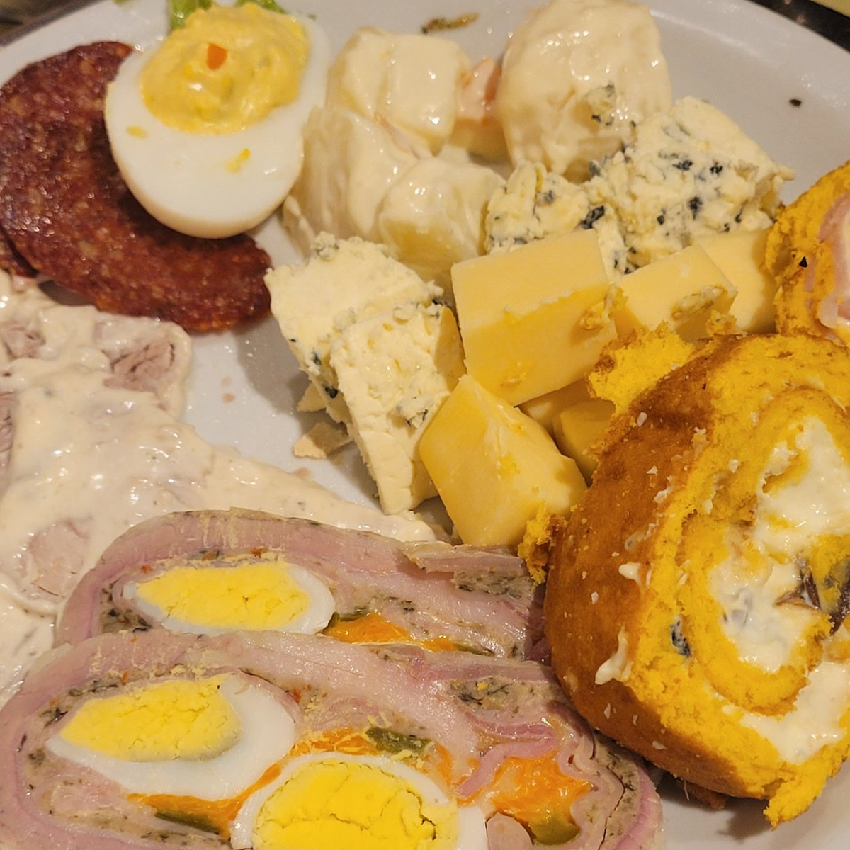 Pero la verdad es que decidimos entrarle con todo a la mesa fría (dos veces el plato rebalsado, las buenas costumbres indican que no hay que servirse más de tres), pasar por alto el principal e ir derecho a lo dulce, porque la primera vez no llegamos.