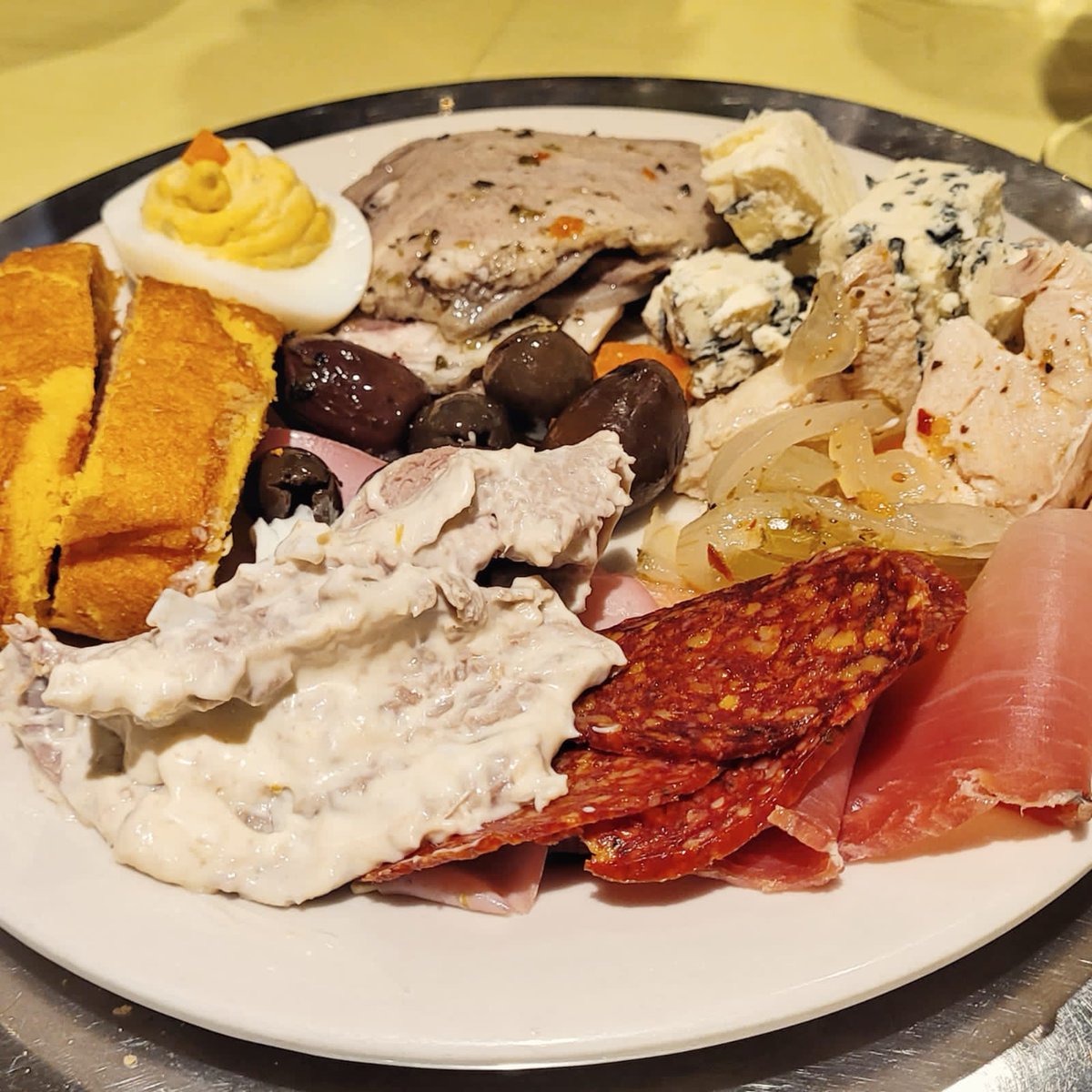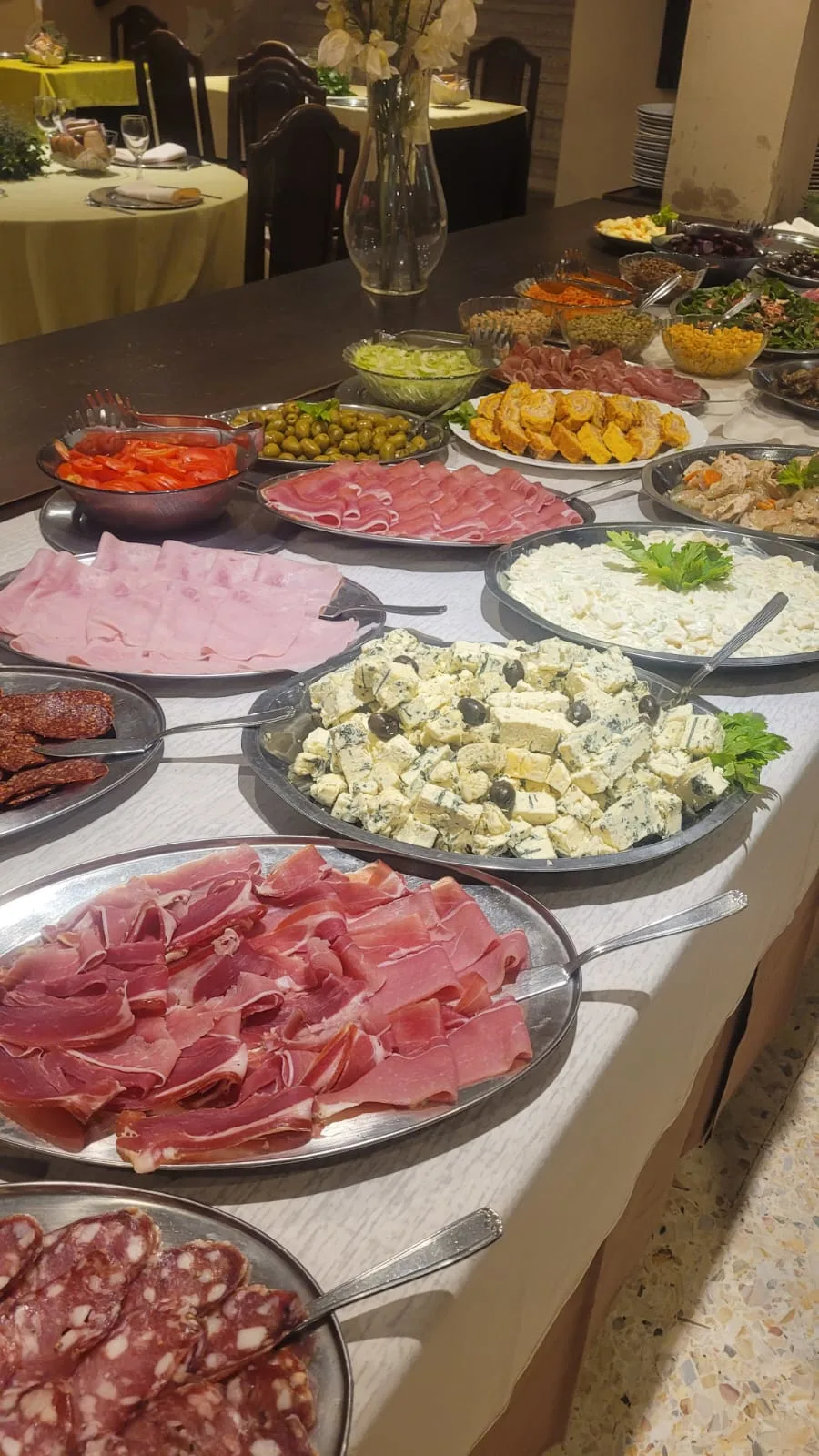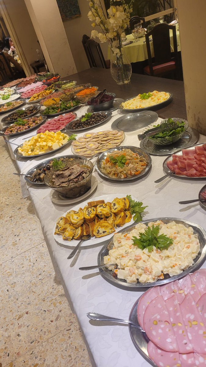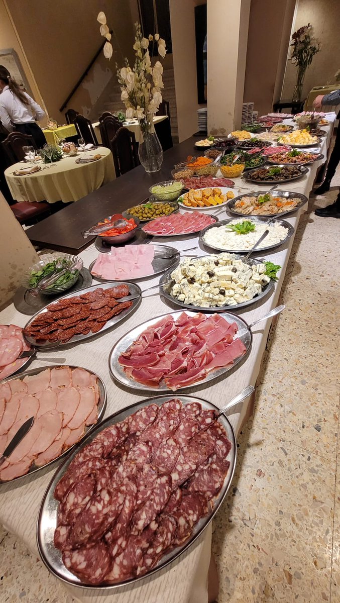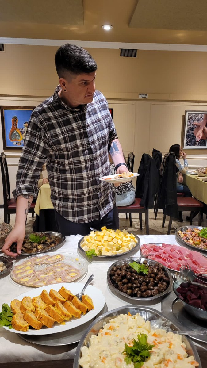 Cuando llegás ves esta gloriosa mesa que tiene de todo y de la que te podés servir cuantas veces quieras. Vitel tone, lengua, pollo en escabeche, fiambres de todo tipo (hay lomo, jamón crudo, longaniza), quesos (el roquefort estaba increíble) y más.
