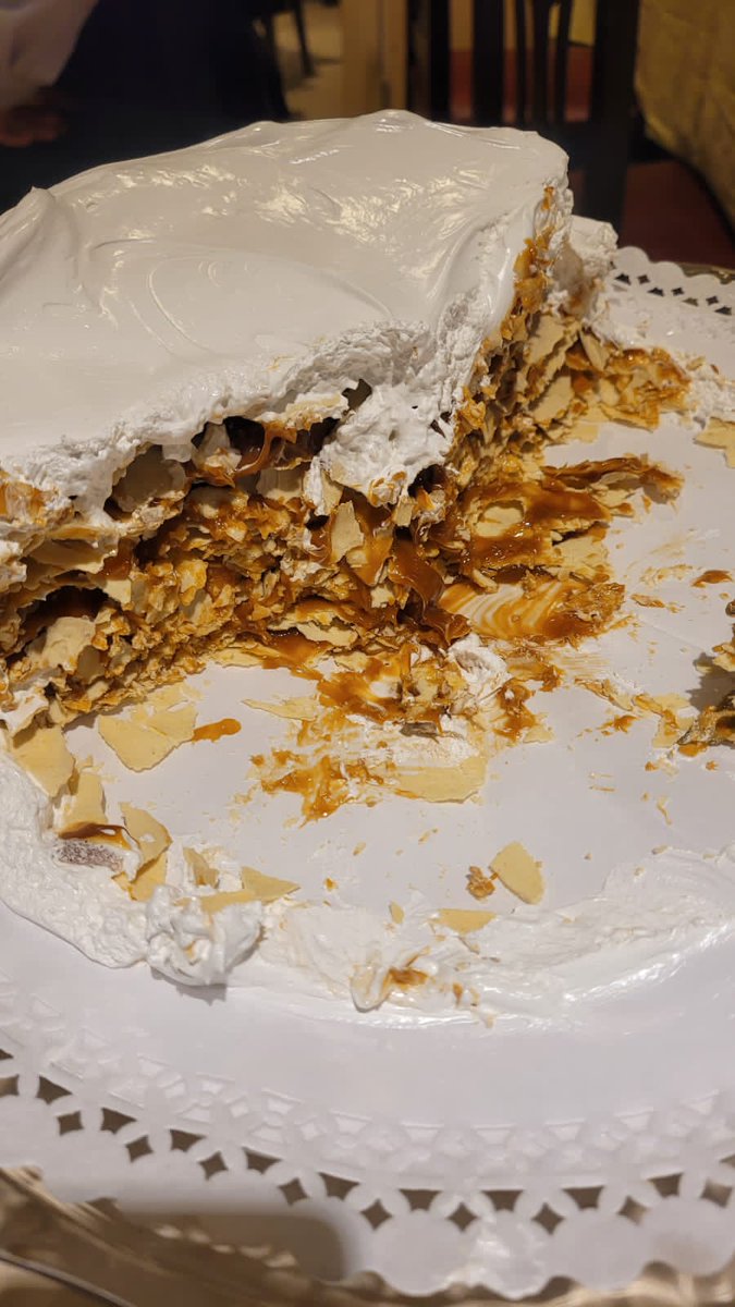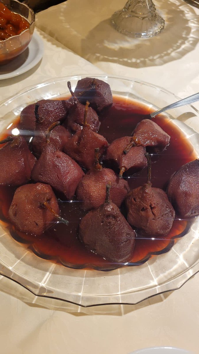 Cuando pensás que no podés comer más, viene la mesa de postres, en las que hay varias tortas, rogel, helado, peras al vino, higos, y otras cosas que no sé cómo se llaman.