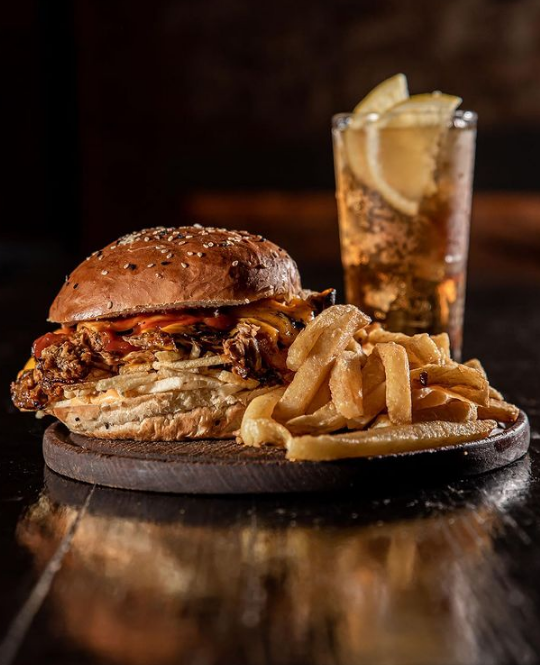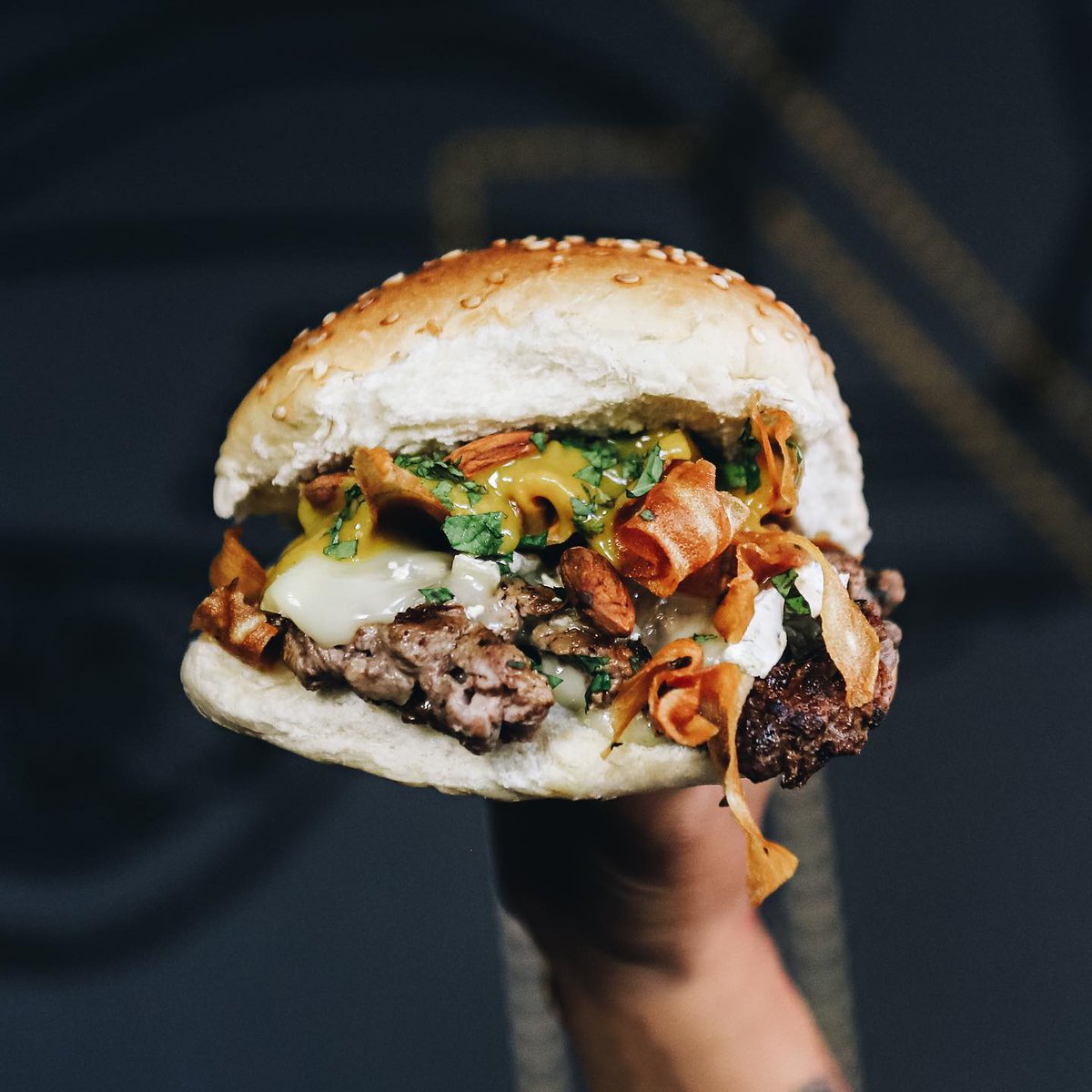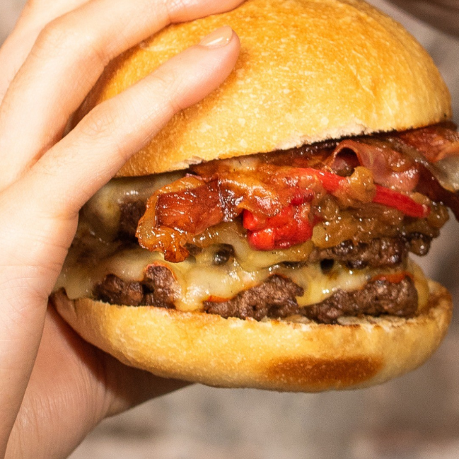 Hacen una patty melt (un estilo de hamburguesa americana donde no se usa pebete sino pan de centeno tipo molde) con doble burger smasheada, cebolla caramelizada, pan de molde de papa y alioli que es impresionante.