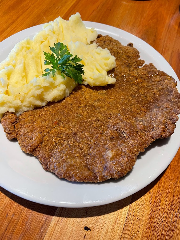Dicen que la milanesa/suprema con puré es celestial.