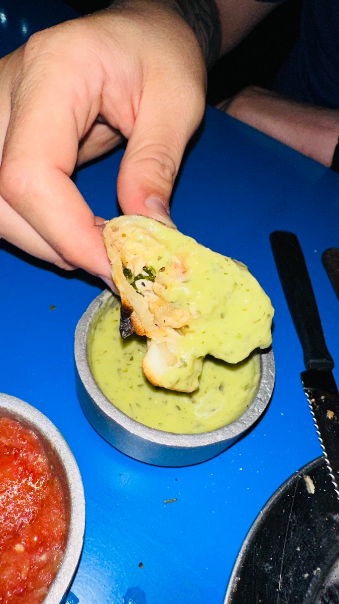 Dato piola: te mandan unos potecitos con salsas para meterles adentro antes de cada bocado que mejoran MUCHO la experiencia. Comimos la yasgua, de tomate y orégano, un chimi que estaba muy bien y la mejor, una verde cítrica a base de palta.