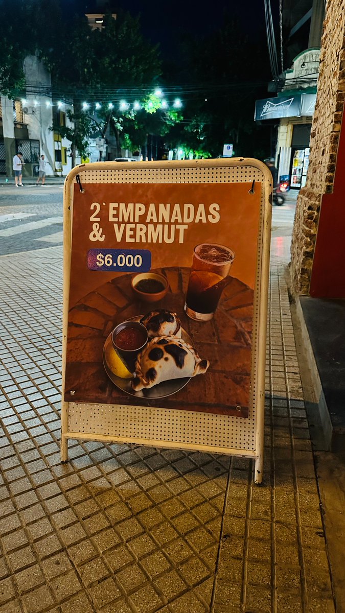 Si te sentás ahí hay promos de 2 empanadas + vermu o vino $6.000/ birra $6.500. Yo diría que la porción promedio para un hombre es de unas 4. Una mujer o un flaco que come tranqui quizás esté con 3.