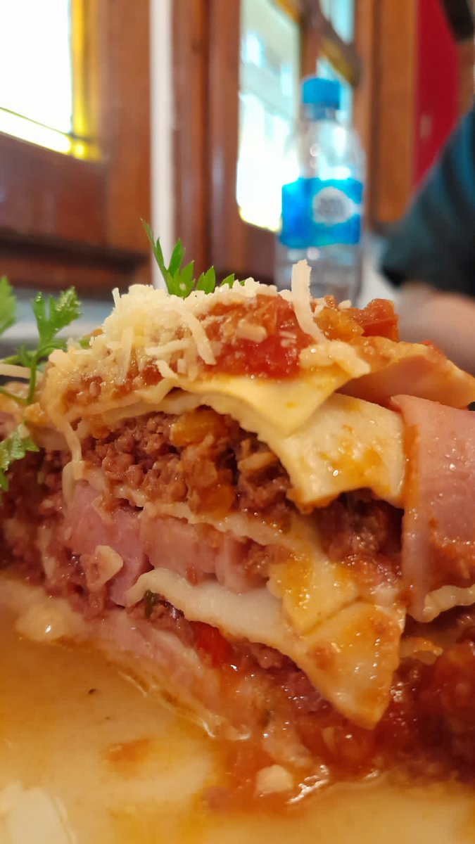 De principal yo me pedí la LASAGNA con filetto. Rellena con tres quesos, jamón y un montón de carne picada. Es el fuerte del lugar. No te podés morir sin haberla probado. La porción es suculenta, te deja de cama. Realmente gloriosa.