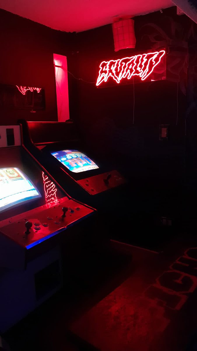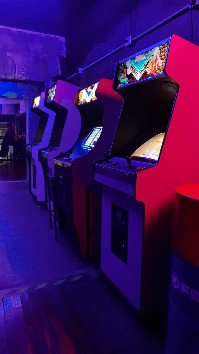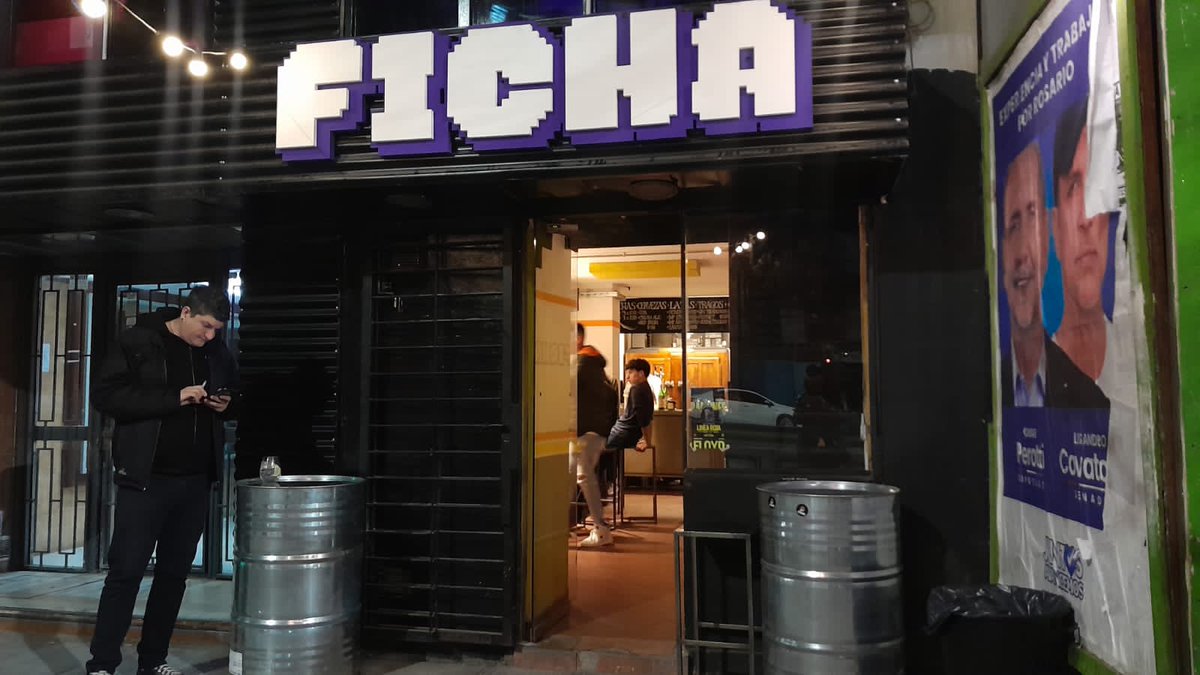 FICHA es un bar de arcades que abrió hace menos de un mes en Francia 811, el sueño de tres chicos que apenas pisan los 40. Hay luces negras, neones, sillones, camperas de cuero, tatuajes. Banquetas con pintas de cerveza apoyadas.
