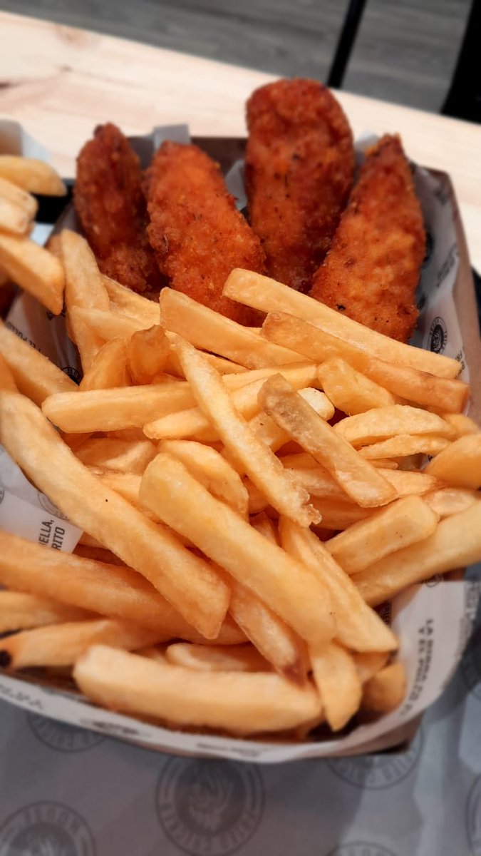 TENDER: piezas de pechuga de pollo rebozadas que vienen para mojar con salsa picante y alioli. Muy ricas. Pechuga de pollo posta, no pasta procesada uniforme y blanqueada de dudosa procedencia como algunas cadenas.