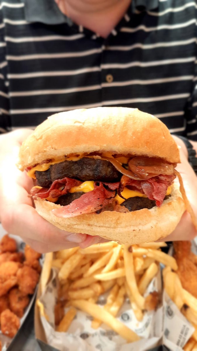 También le di una oportunidad a la BURGER DOBLE BACON (pensé que era de pollo al pedirla jaja): dos hamburguesas, cheddar, panceta y cebolla caramelizada + papas. Me sorprendió el pan, muy bueno. La carne estaba un poquitito seca, pero entiendo que la especialidad es el pollo.