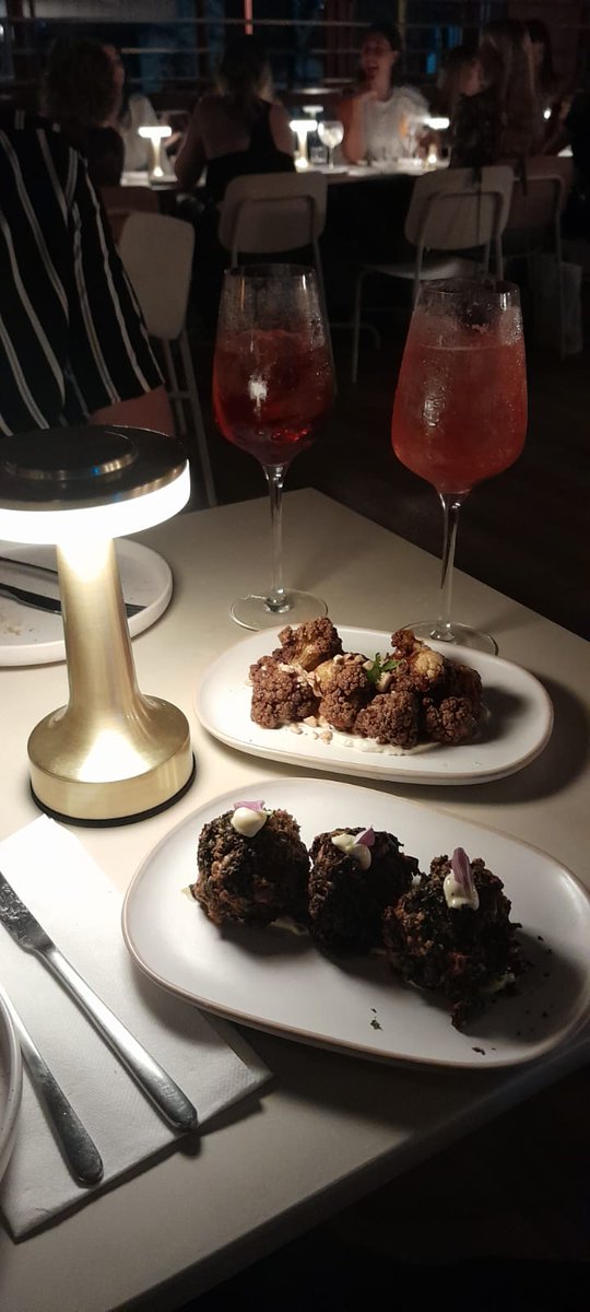 La bebida. Los sptritz son riquísimos y están muy bien armados, con delicadeza, algunos terminados con flores. Hay mezclas muy buenas de aperol, bianco, campari y gin con espumantes, sidra, vermus e ingredientes de autor como tinturas o sodas de jengibre e hibiscus.