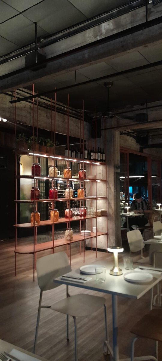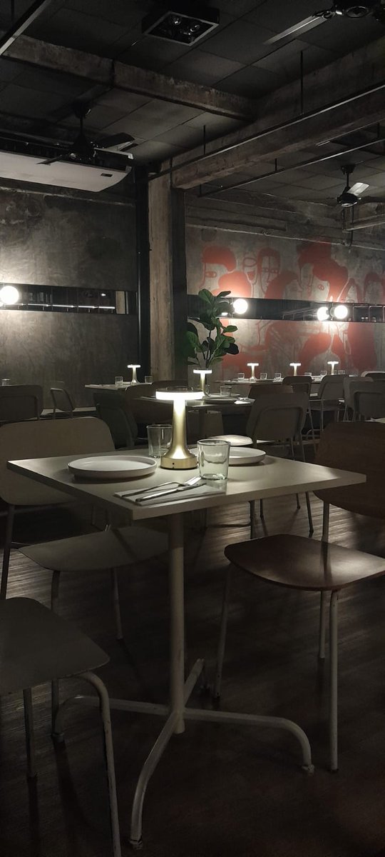 Un detalle que me gustó mucho es la iluminación tenue con lámparas LED en las mesas, que te dejan regular la intensidad. El lugar es espacioso, las mesas están bien separadas. Es muy abierto y con vidrio. Mi novia dice que le hizo acordar a algunos lugares en Roma.