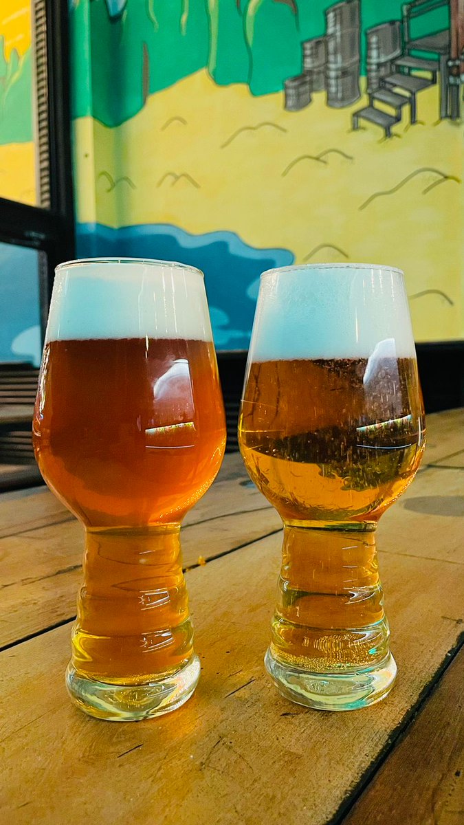 Para el final vino una APA Sorachi (creo que la de la izq). American Pale Ale con lúpulo japonés, muy amable y algo dulzona. Muy tomable, aroma a eneldo y limón, accesible a la boca. Ganó la medalla de Bronce en el festival de la cosecha del lúpulo 2018 en El Bolsón.
