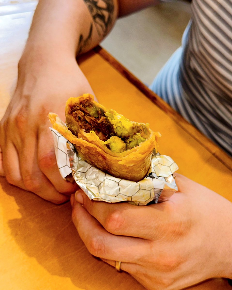 Pero lo que más me gusta a mi son los rolls. EL ORIGINAL BEEF es como un burrito mexicano con carne desmechada, palta, queso cheddar, porotos refritos, tomate y cilantro. Super contundente, te hace una comida solo. $12.900