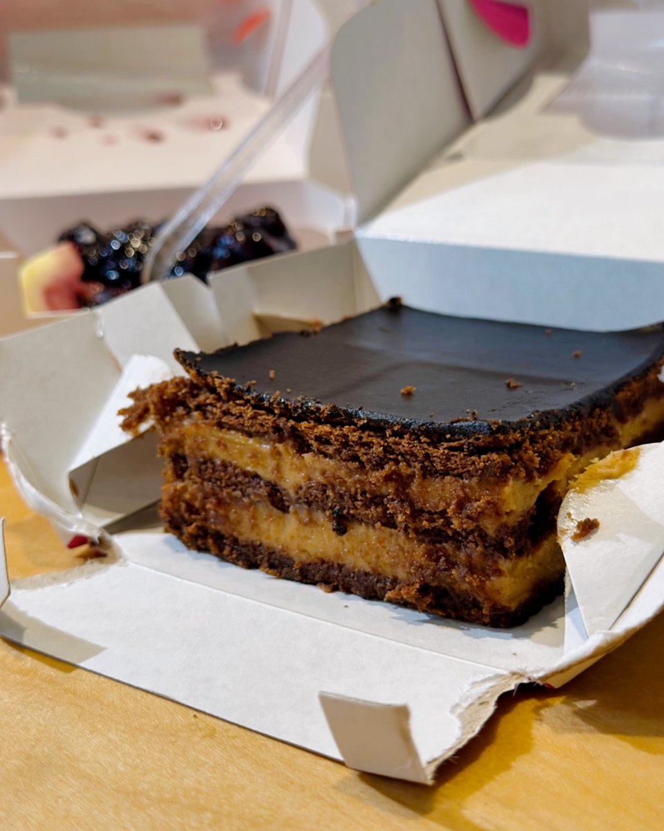Postres: esta buenísima la CHOCOTORTA. Esta versión me pareció cremosa, húmeda y suave y tiene una cobertura de chocolate amargo que te vuela la peluca. Lleva cacao en polvo, dulce de leche artesanal y café molido. $7.300