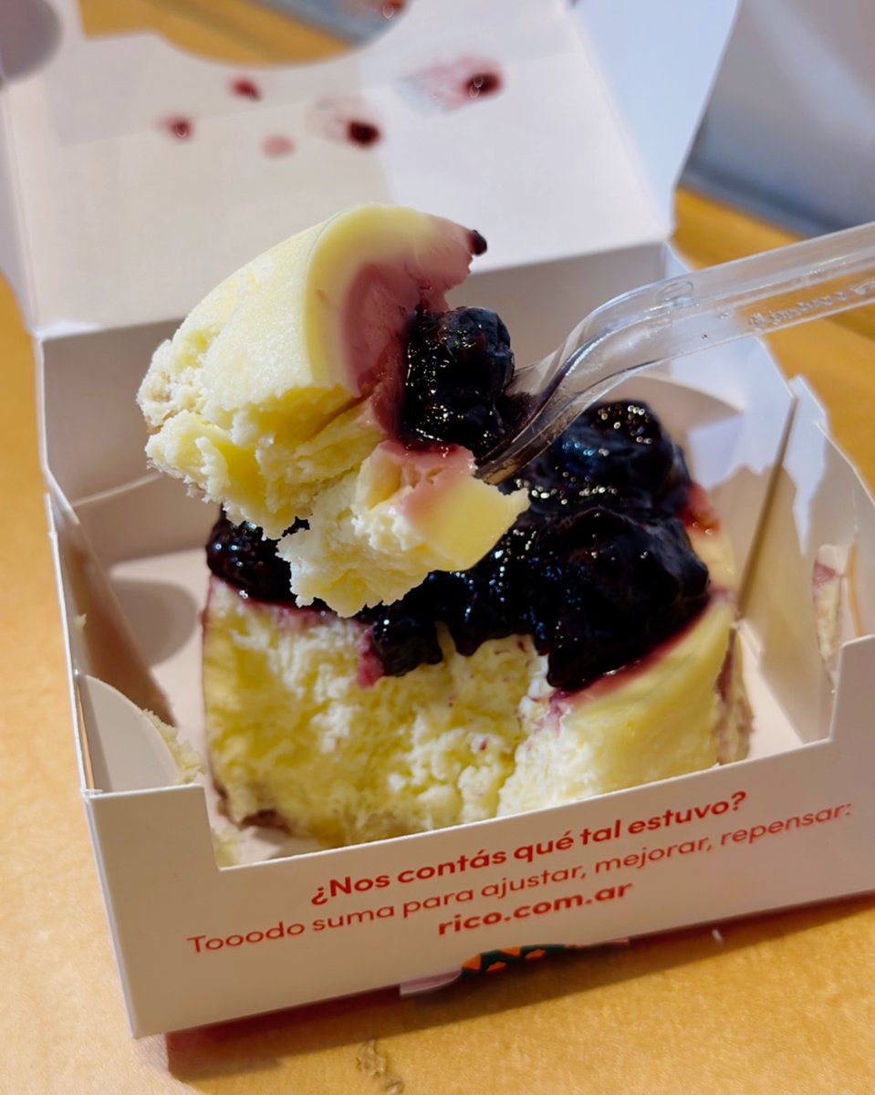 El CHEESECAKE también estaba bárbaro. Receta tradicional: harina integral, semillas, queso crema, poca azúcar y frutos rojos frescos. Ni saborizantes ni polvos leudantes. $7300