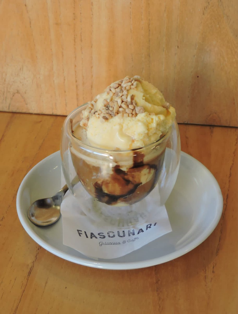 Otro que vale la pena probar es el Affogato. Es una bocha de helado ahogada en café de especialidad. Es un postre que suelen hacer más en restoranes que en heladerías, y acá lo preparan muy bien con un café de Colombia supremo bien fuerte (de la gente de Doscafé).
