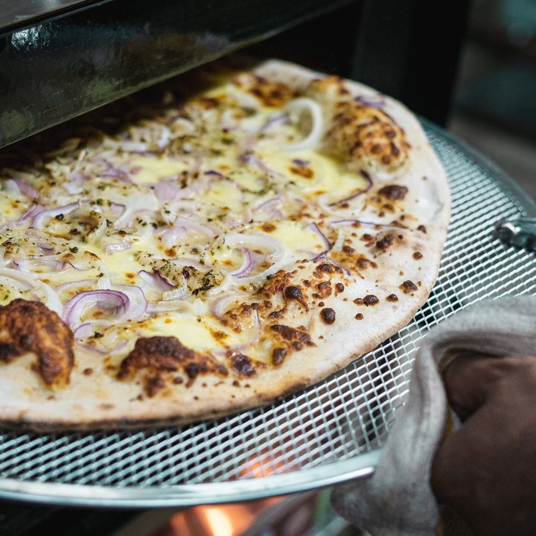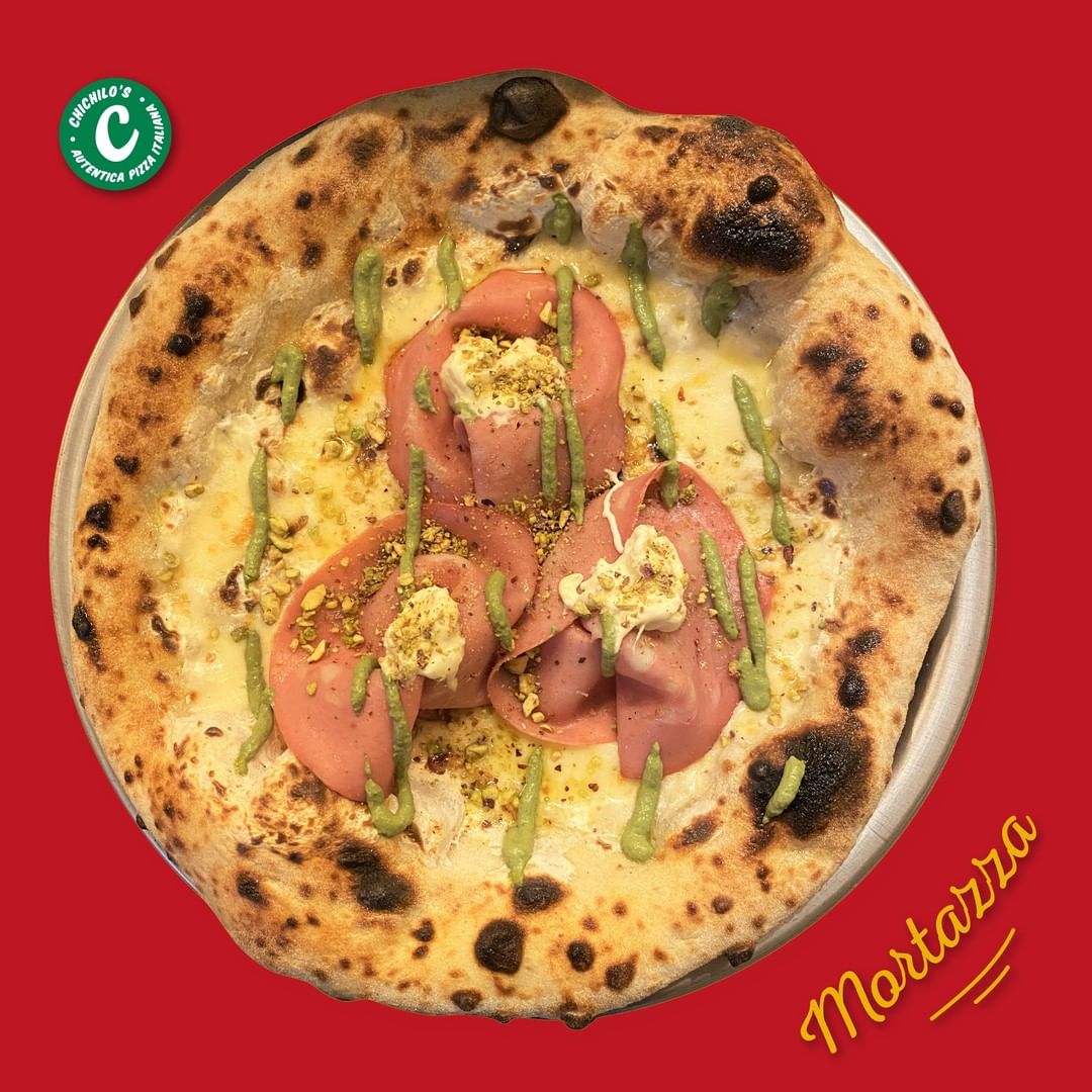 Estilo napolitano. Harina y tomate italiano, larga fermentación en frío, insumos de calidad y cocinada en horno traído de Nápoles.