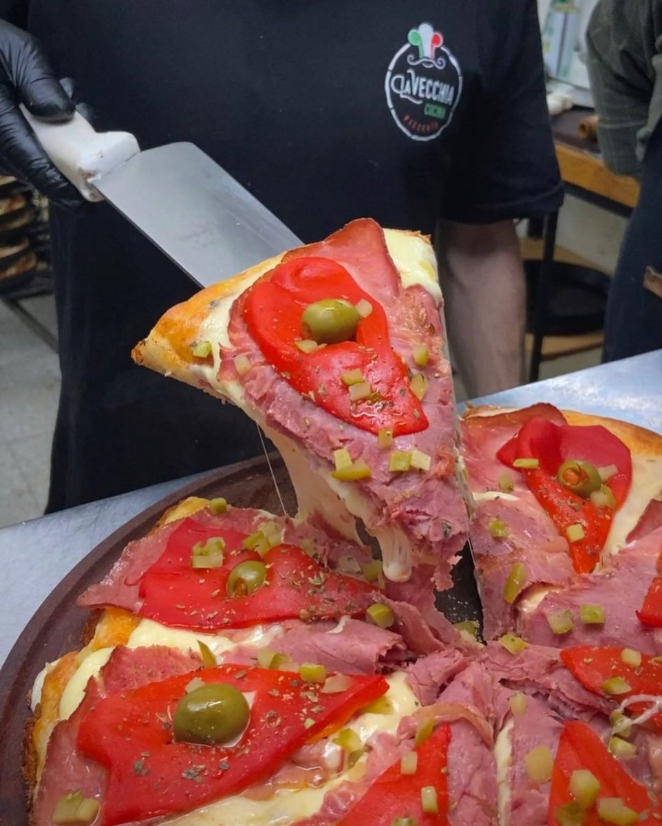 «Es la mejor pizza al molde de Rosario. La calidad del producto, abundante, el queso, la masa esponjosa y la base crocante. Para mí la mejor es la de pollo y panceta», @iuliuscaesarag