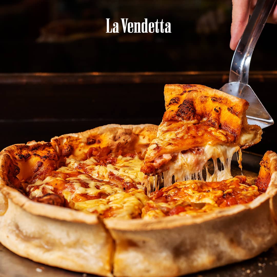 Impulsores de la pizza a la parrilla, también hacen una estilo Chicago, que es como una especie de tarta sin tapa: alta, con masa gruesa, rellena de salsa de tomate y queso.