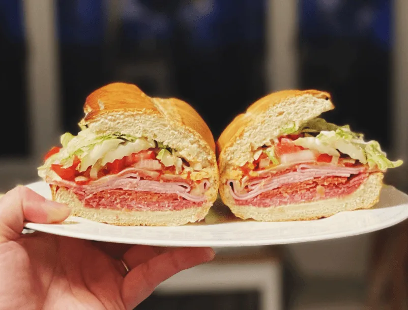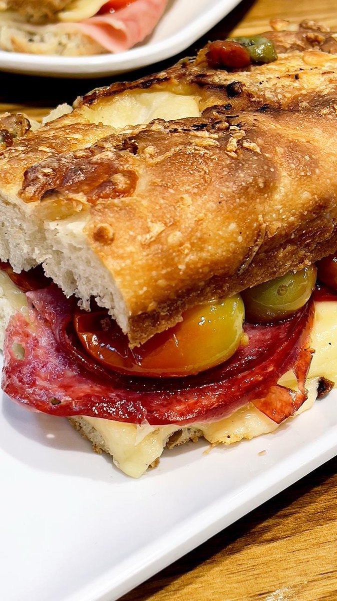 La cafetería de La Pastelería (Pte. Roca 1823) tiene unos sándwiches hermosos. Este de Focaccia de masa madre, bien aireada y crocante, rellena de salame y queso tybo, con aceite de oliva y tomates cherrys confitados es una masacre. Esponjosa, bien condimentada. Lujo por $6000