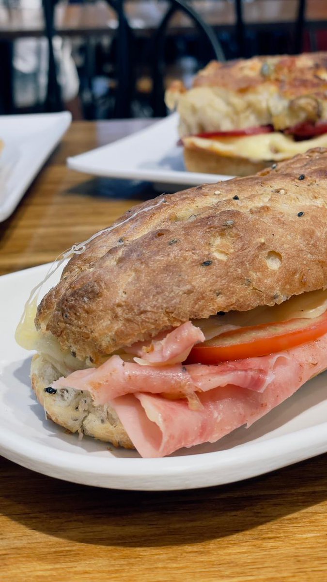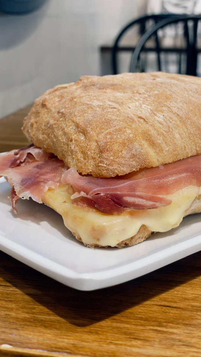 El fuerte son las cosas dulces (ya les voy a mostrar un par) pero tienen buenas opciones saladas. Por ejemplo esta Ciabatta, un pan sanguchero más suave, con jamón crudo, queso y manteca ($6000) es un manjar. Los sirven calientes y de todos hay línea vegetariana.