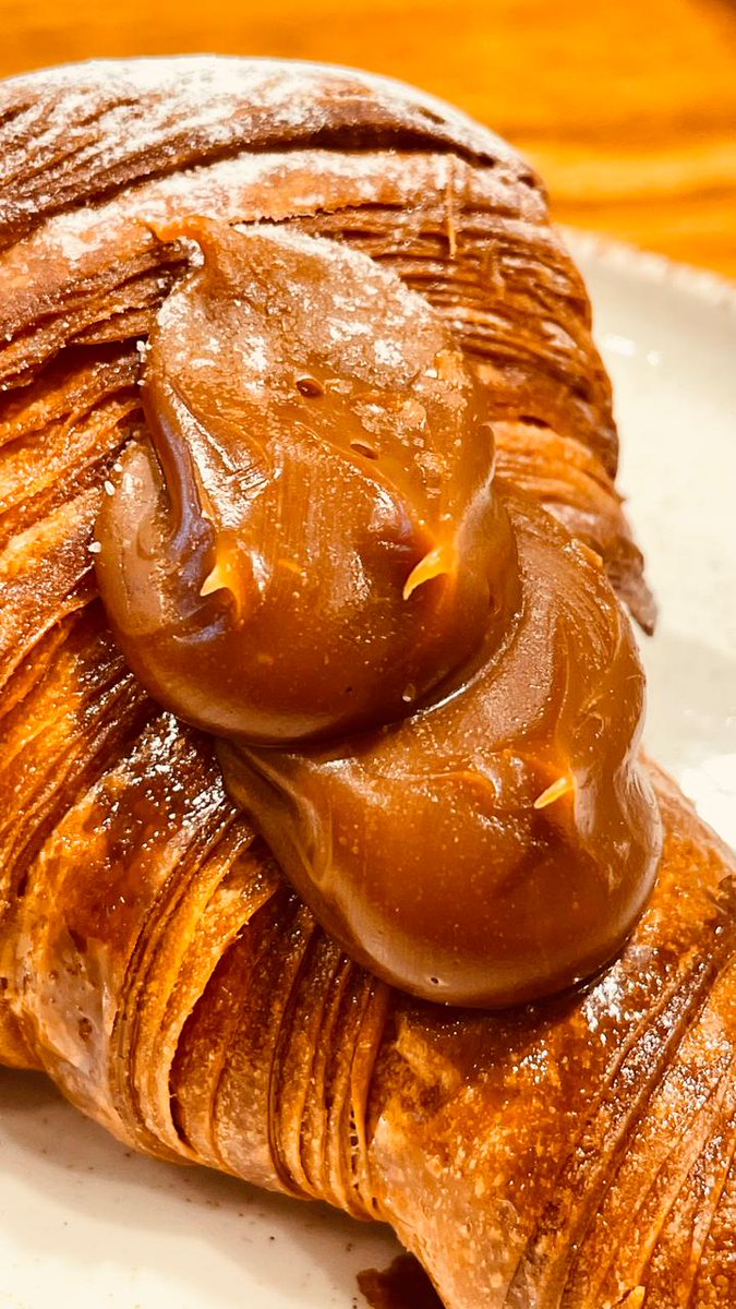 Todo lo que es laminados bien mantecosos es la especialidad del lugar. El croissant relleno de dulce de leche tiene tanto que es grotesco. La masa tiene marcada la burbuja, es aireado. He comido mejores pero está bien trabajado.