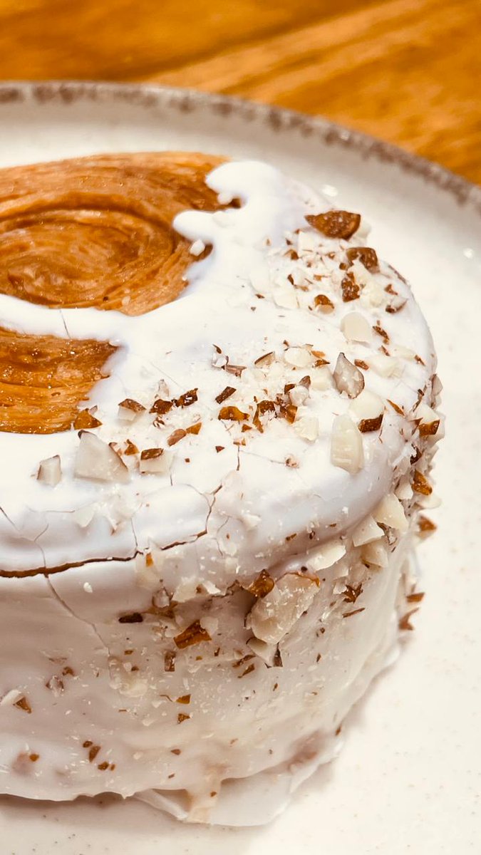 El new roll relleno de pastelera también estaba muy bien. Es algo bien yanqui, como un roll de canela pero más esponjoso, con un glaseado delicado y una capa de trocitos de almendra. Digno de ir a probar.