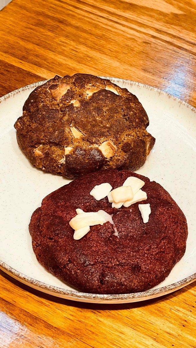 De yapa me hicieron probar unas cookies americanas de pistacho (saben de mi fanatismo) y de red velvet. Los adolescentes las ven en redes y van como locos a sacarle fotos y videos para su Instagram y Tik Tok. Ricas pero esperaba algo más consistente.