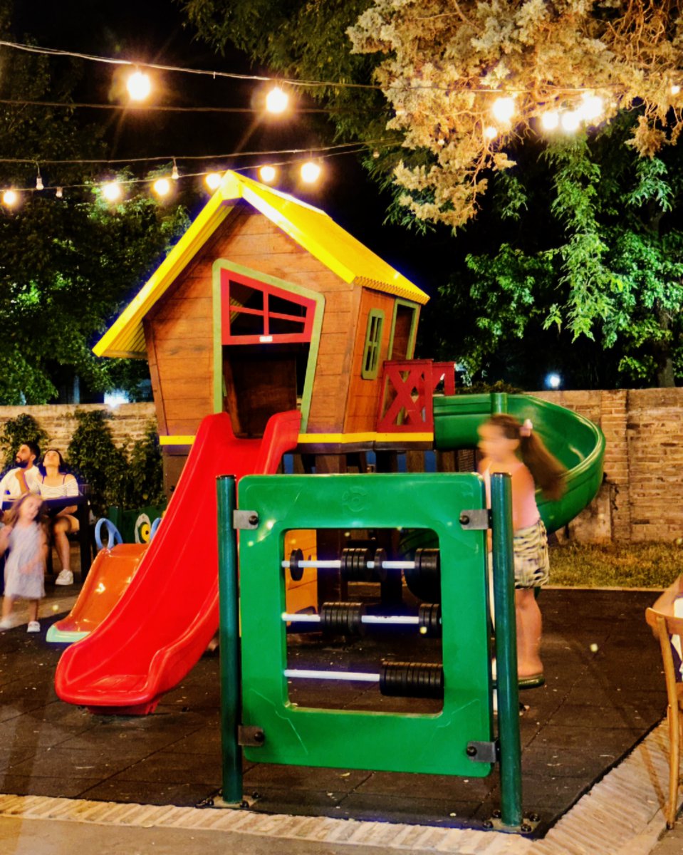 Muy linda locación. Es un lugar enorme, con un patio alrededor de una casona vieja reciclada. Tiene 250 cubiertos y es la única sucursal con juegos para chicos. Hay una casita con toboganes en la parte cerrada del patio, así que podés comer tranquilo mientras los pibes juegan.