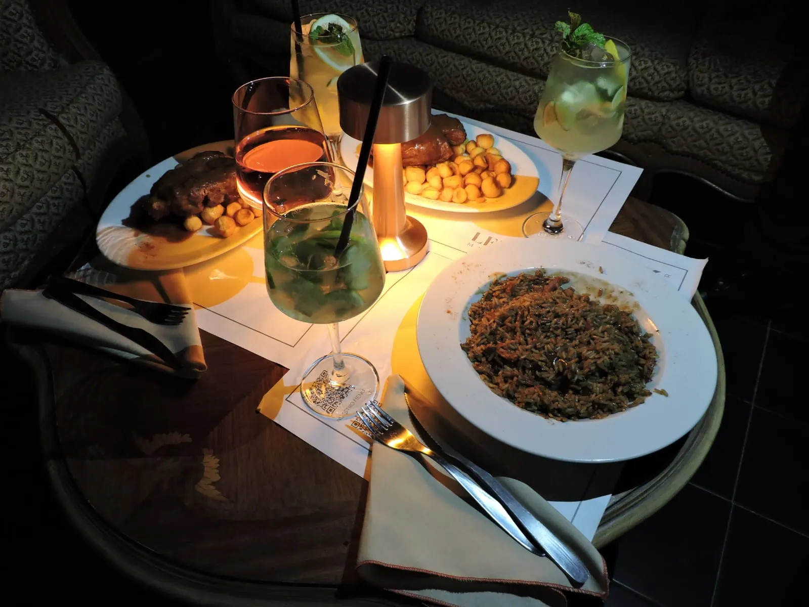 Nosotros fuimos a cenar. Primero hicimos barra, es bien larga y con banquetes cómodos para que se sienta una chica que mide 1,50 y algo como mi novia. Tiene una buena variedad de bebidas y tragos. No vi cosas de autor, pero están bien presentadas.