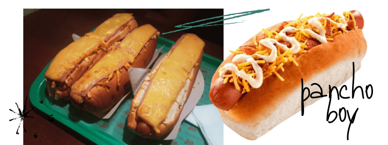 «El super pancho boy, va con 3 salsas. Mitad huevo duro, mitad papas y gratinado con jamón y queso»
