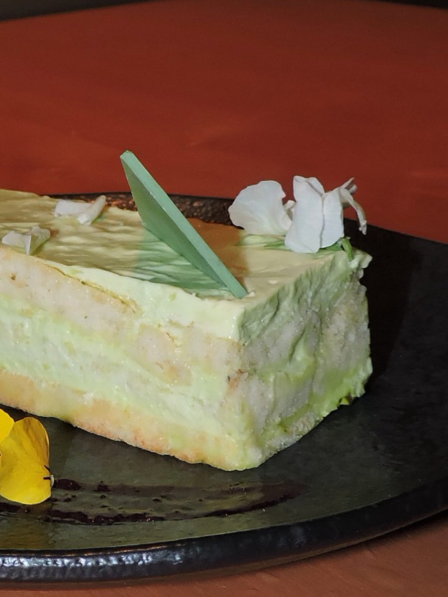 Con bizcochuelo húmedo de vainilla. Sabor alimonado, a torta de cumpleaños pero de alta gama.