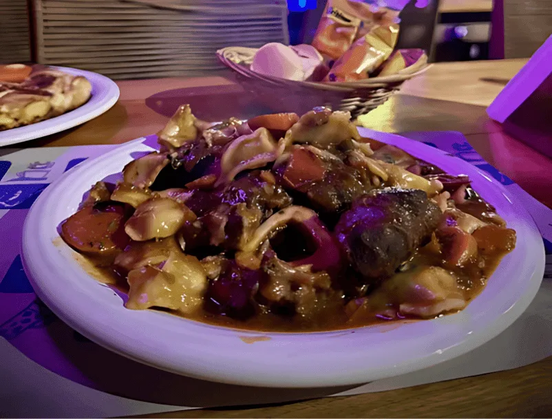 …a un bar que no conocía y terminé comiendo un plato de OSOBUCO CON RAVIOLES AL DISCO que me hizo muy bien por poca guita. Mirá lo que es este plato, papá! Un golazo.