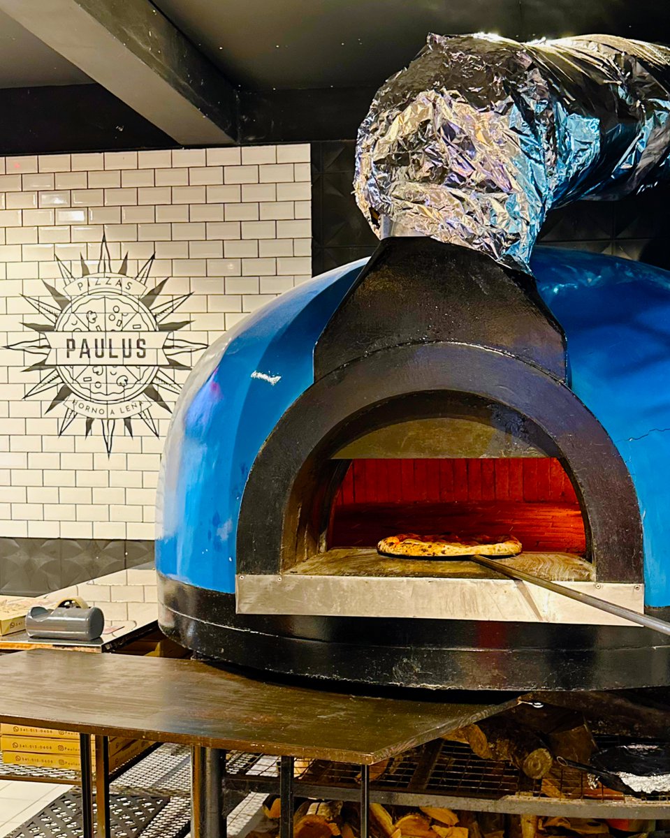 Detrás del mostrador están Paulo, su esposa y sus hijos, más un equipo que funciona como un engranaje perfecto. No es casualidad que les haya llevado cuatro años juntar las máquinas para abrir su pizzería soñada: cuando hay pasión de por medio, no se improvisa. El fuego manda Lo primero que llama la atención es el horno de leña diseñado por el propio Paulo donde las pizzas entran a 380° desarrollando ese borde inflado, aireado y dorado con manchas de leopardo, marca registrada de la escuela napolitana. Pero acá la tradición se cruza con el sello personal con sabores de autor que le dan a Paulus su propia identidad.