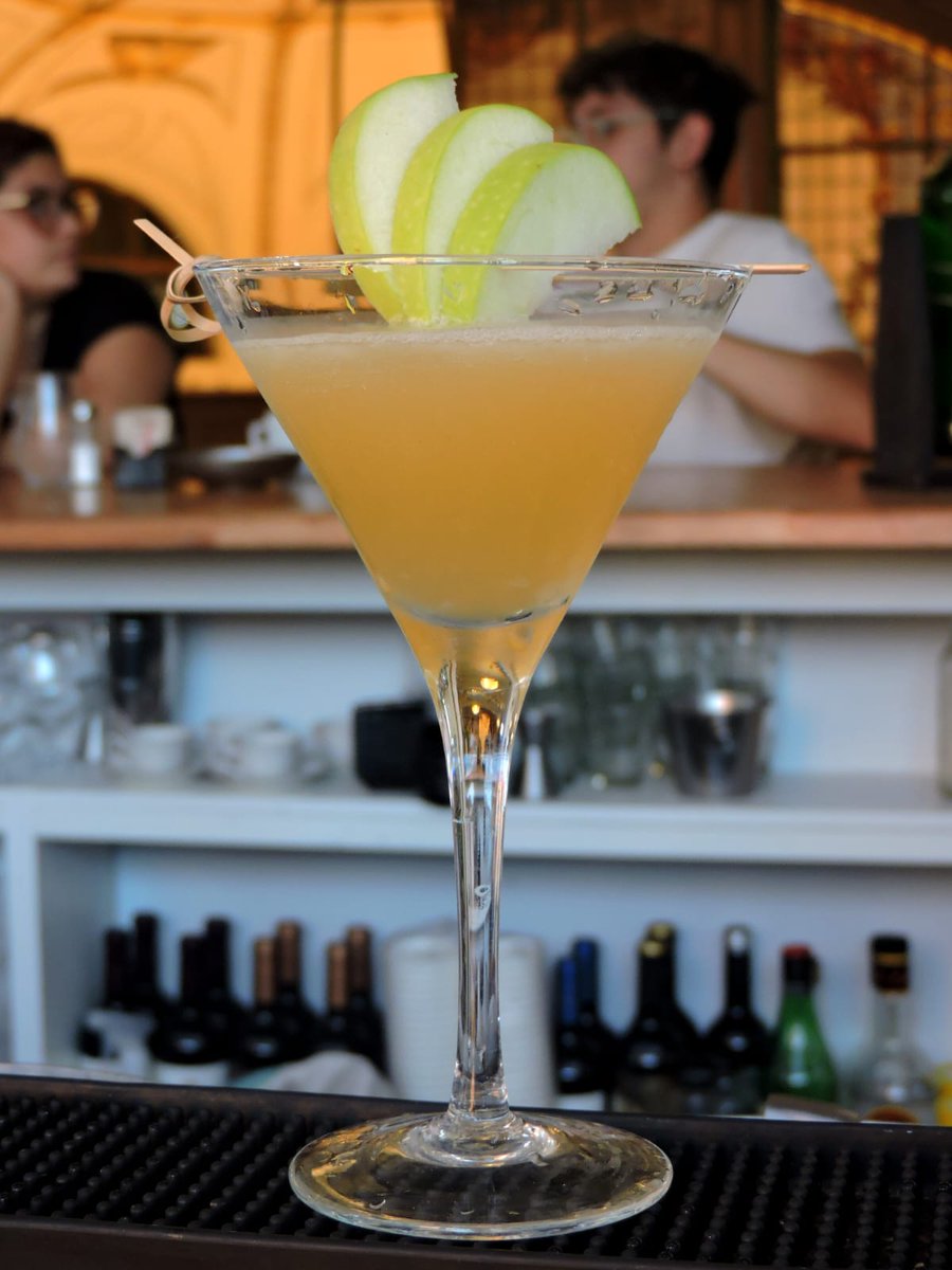 Almíbar de miel y jengibre, whisky Jameson irlandés y decorado con manzana verde. Fresco pero intenso. Un cocktail que tomaría Nicole Kidman en Big Little Lies.