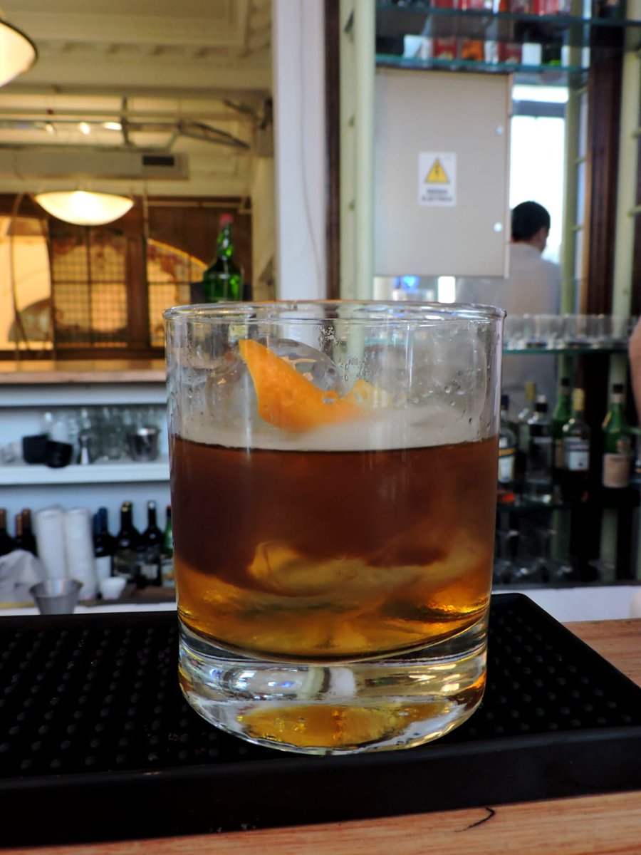 Licor 43, Jack Daniels, café expresso. Tiene un final ahumado con cascaritas de madera que quema con un soplete. Es el trago que se toma el detective de una película de acción de los 80 luego de un día agotador.