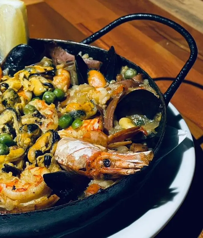 «La paella y tapas más ricas que comí acá, la atención es excelente y el lugar es muy lindo, la sangría buenísima también y unas rabas para morirse. Todo super abundante, pedimos paella para uno, comimos dos (de buen comer) y todavía sobró», @reescorpiodicen