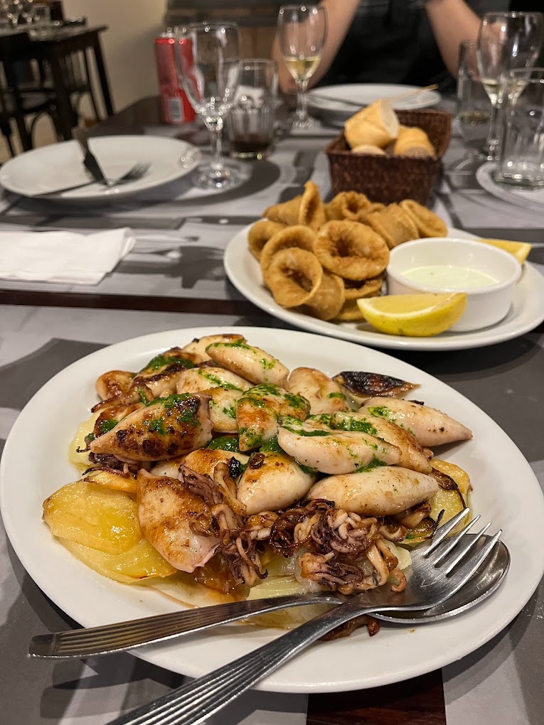 «Subsuelo de sabores exquisitos. Chipirones, arroces, pescados gloriosos. Aceptar las recomendaciones de las meseras. Reservar porque hay pocas mesas. Salis con fragancia a ajo y alegría seguro» @metavivir