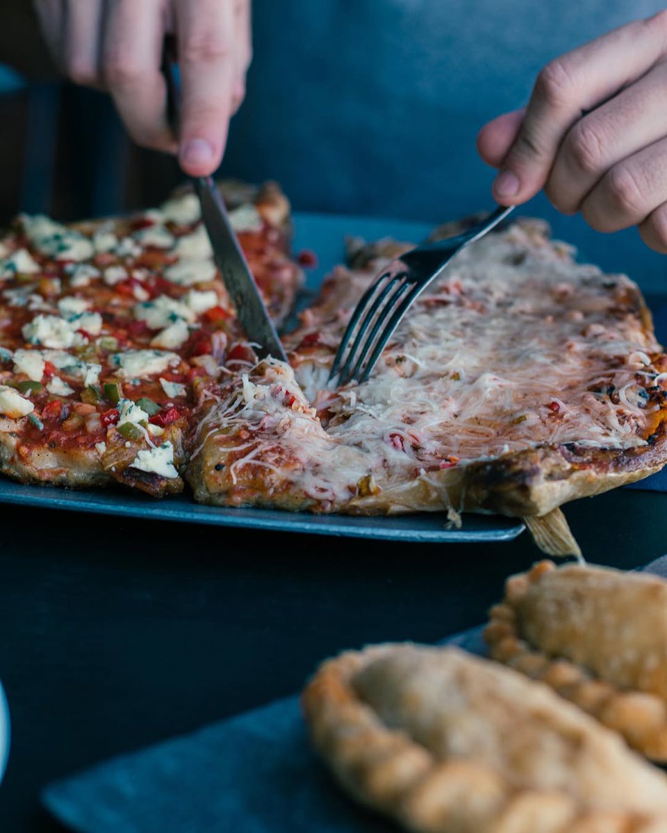 Pizzería. Para mi es media masa pero ellos dicen que es a la piedra porque lo que lo define es la cocción y no la altura. Horno a leña, cantidad de sabores y cargada de ingredientes. Palitos mágicos de queso y chopp gratis mientras esperás en el mostrador. Vende continuidad en un mundo obsesionado por el cambio y la novedad.