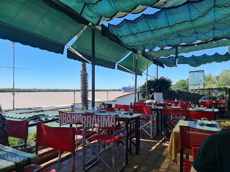 El restaurante del club es un gran lugar junto al río para comer boga, sábalo o dorado a la parrilla. Tienen un menú con empanadas y albóndigas.